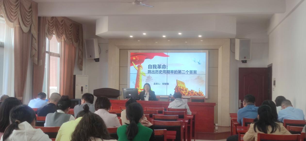 为深入贯彻落实党的二十大精神,深入推动yl6809永利党建工作特色品牌“微党课”活动,2023年11月7日下午,学院组织全体教职工党员于立言楼A425开展了以 “自我革命:跳出历史周期率的第二个答案”为主题的“微党课”第八课讲座,本次党课由yl6809永利副院长宋智敏教授主讲。