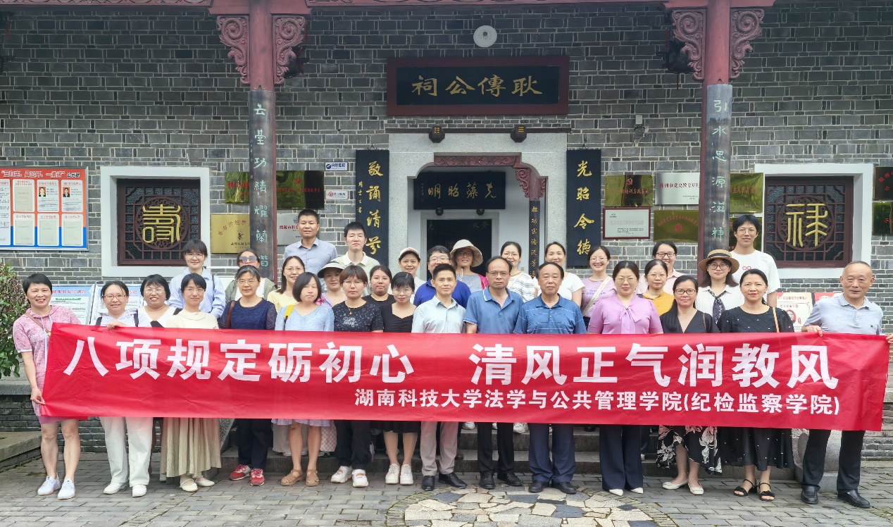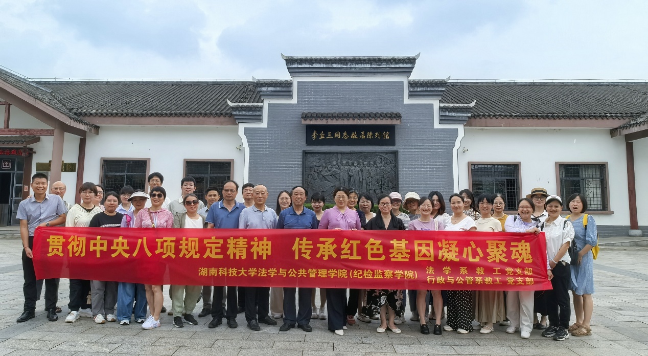 为深入贯彻中央八项规定精神,强化党员政治素养,丰富党员活动形式,2025年6月10日下午,我院法学系教工党支部、行政与公管系教工党支部组织全体党员赴株洲醴陵开展“贯彻中央八项规定精神传承红色基因凝心聚魂”主题党日活动。