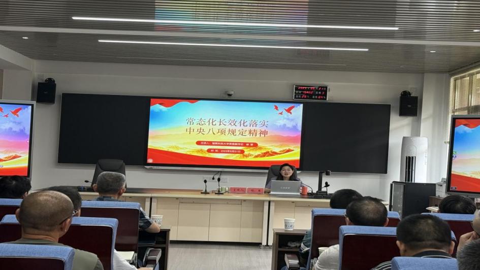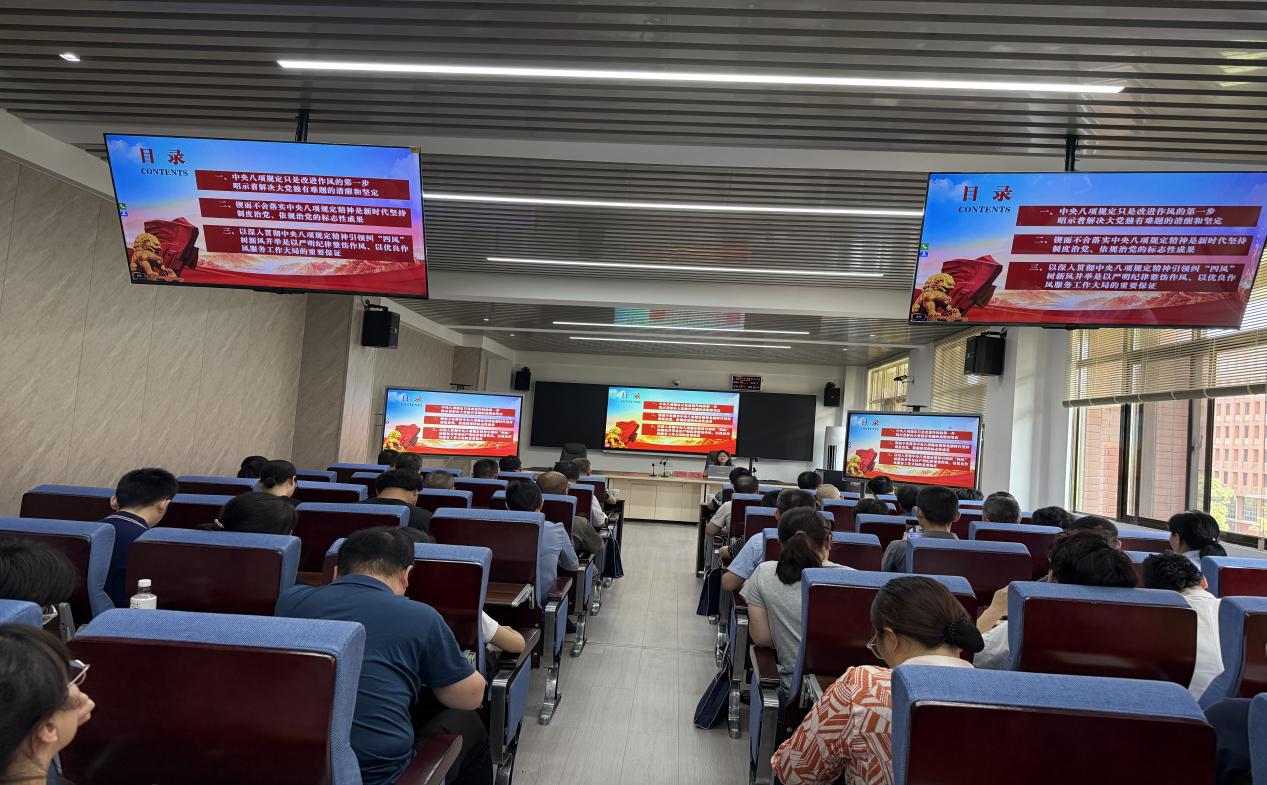 为贯彻落实党的二十届三中全会部署,巩固拓展学习贯彻习近平新时代中国特色社会主义思想主题教育成果,巩固深化党纪学习教育成果,锲而不舍深入贯彻落实中央八项规定精神,推进作风建设常态化长效化,引导学院师生党员筑牢思想根基、强化纪律意识,常态化长效化落实中央八项规定精神,以作风建设新成效开创学院高质量发展新局面!5月21日,法管学院特邀校党委副书记谢慧教授在立言楼模拟仲裁庭作了主题为“突出常态化长效化落实中央八项规定精神”的专题党课。