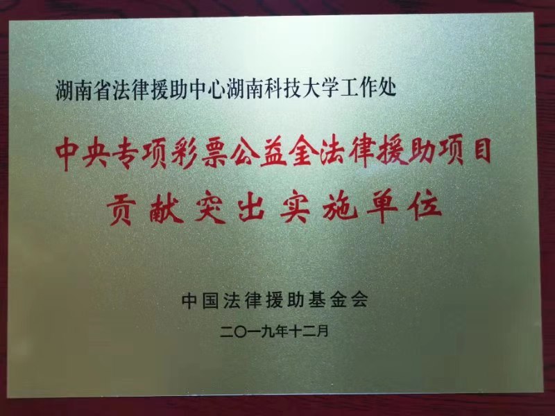 2019年12月28日,中国法律援助基金会“学习贯彻党的十九届四中全会精神,进一步推进法律援助项目规范化建设座谈会”在北京人民大会堂召开。湖南省法律援助中心湖南科技大学工作处(简称法律援助中心)负责人、yl6809永利邱帅萍副院长代表法律援助中心参加了会议。会上,法律援助中心被授予“中央专项彩票公益金法律援助项目贡献突出实施单位”荣誉称号。