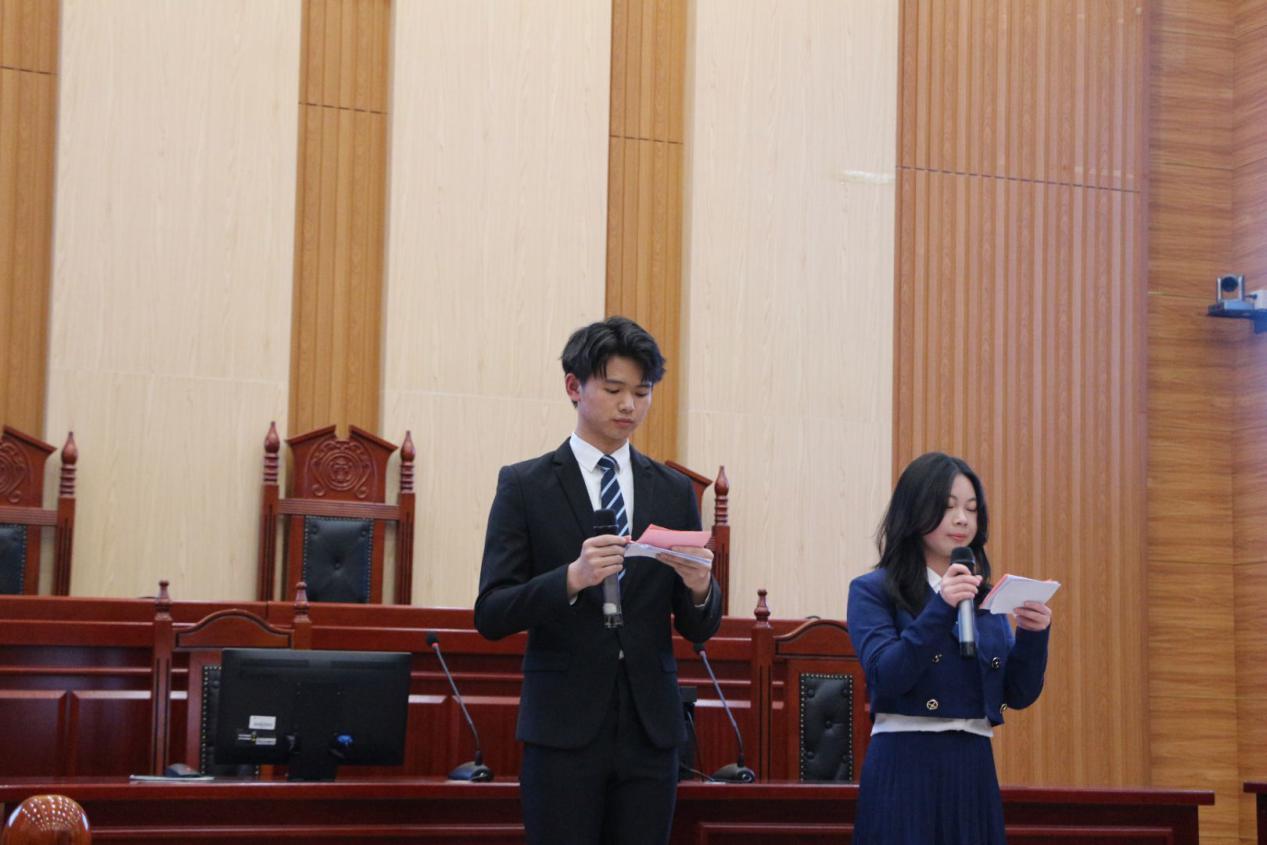 比赛开始后,五位选手依次向评委和同学们展示自己的职业规划。“幽默是生活,严肃是工作”选手廖艺歆以种子成长为花朵的艰难历程为类比点,向同学们展示了她成为一名清廉法官的职业目标,新颖的介绍方式和幽默风趣的谈吐赢得了大家的一致好评。选手吴钰桦将自己比作航海家,探寻着自己的小岛——教师与公务员,阐述对理想的看法与规划,立志做自己灵魂的摆渡人。无独有偶,选手黎宇晴同样梦想成为公务员,为民为国奉献终身,在平凡中孕育不平凡。选手雷洋分享了关于西藏牧民的故事,以严谨流畅的表述、铿锵有力的发言向同学们阐述了她成为少数民族边远地区法律工作者的梦想。选手姜嘉烨则由古言引入,将中国法律图像拆解成麦穗、齿轮等,从中确立了未来学业的安排。