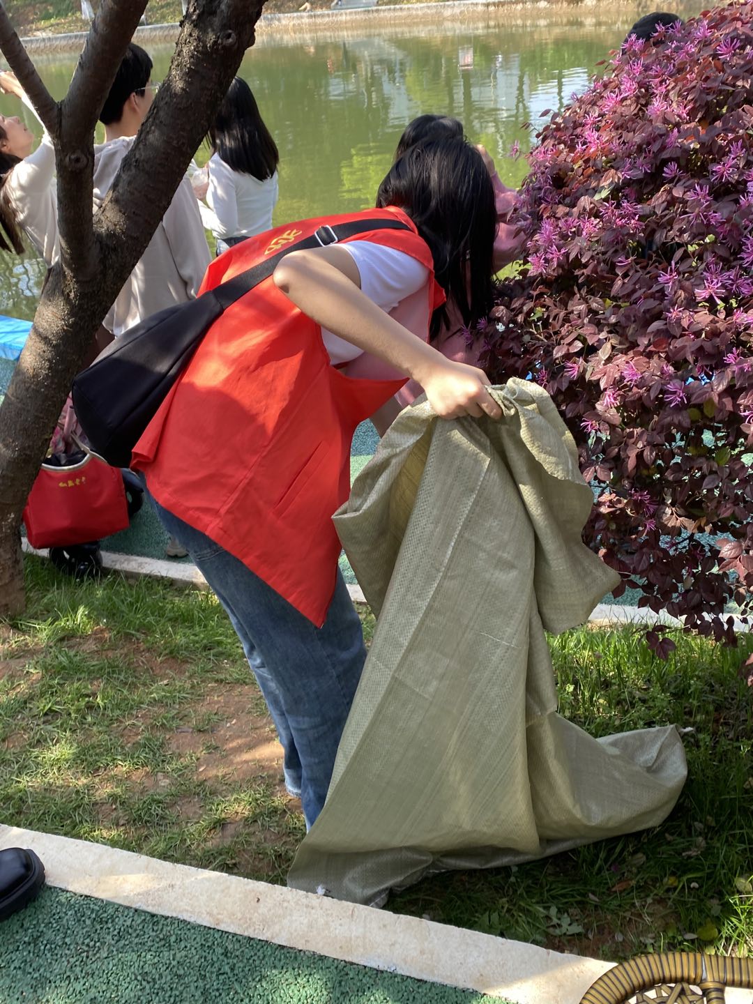 4月1日下午,法管学院青年志愿团在樱花园开展“雷锋月与樱花节相遇”活动
