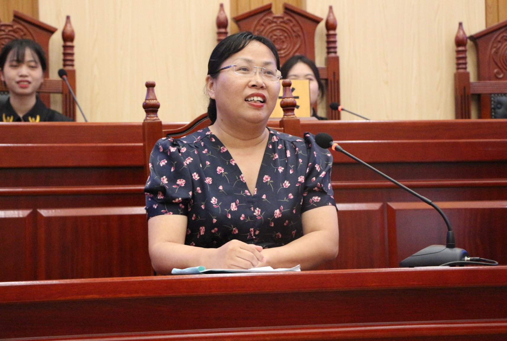 朱红梅老师、左洪剑老师、周玉利老师、雷勇老师对民事模拟法庭活动进行点评(图为朱红梅老师和周玉利老师)