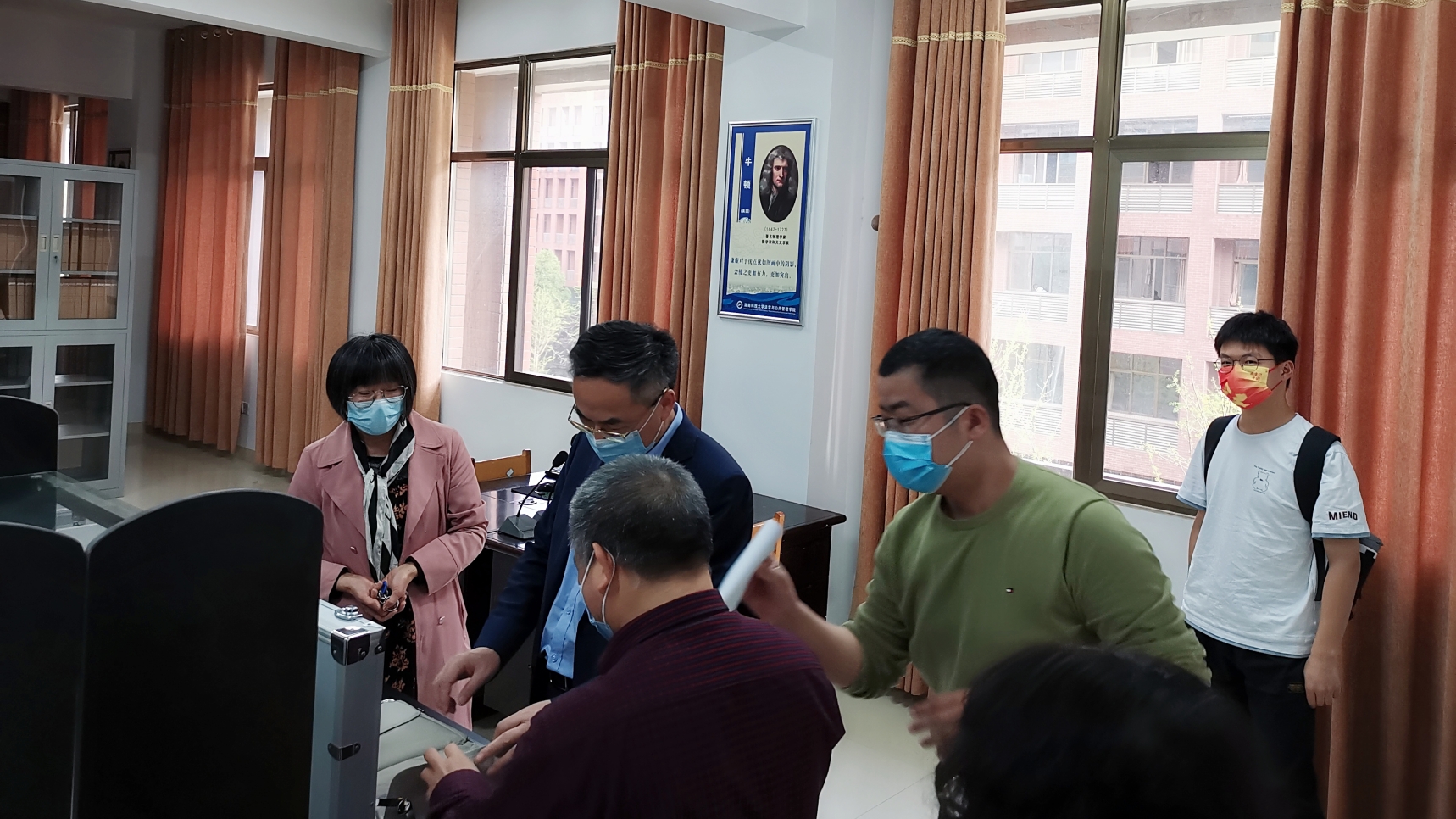 廖校长听取了我院疫情防控、公共资源清查、实验室使用及管理等情况汇报,他强调,要强化疫情防控职责、注重公共资源的合理配置和高效利用以及实验室安全。国资处领导对于资产清查和实验室使用中遇到的问题,也一一给予了指导建议。会后,廖校长一行对实验室和办公用房的使用情况进行了走访抽查。