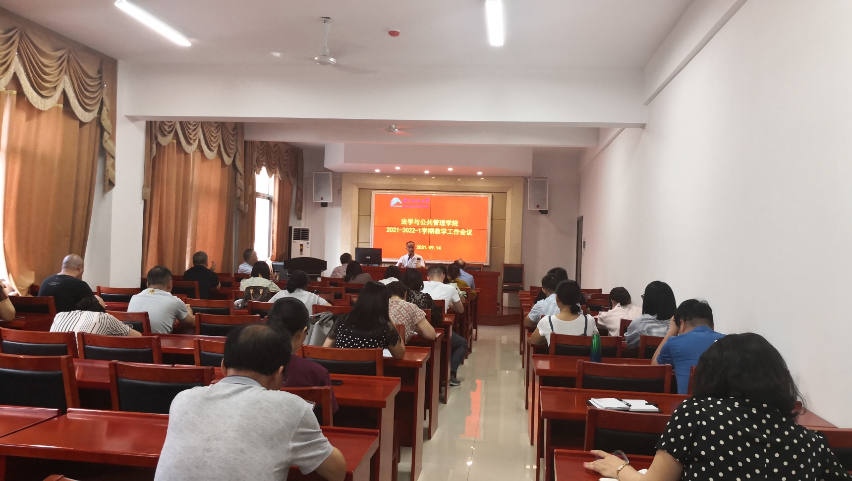 2021年9月14日下午,法管学院新学期教学工作会议在立言楼A425召开,会议由院长徐德刚教授主持,全体教师参加。