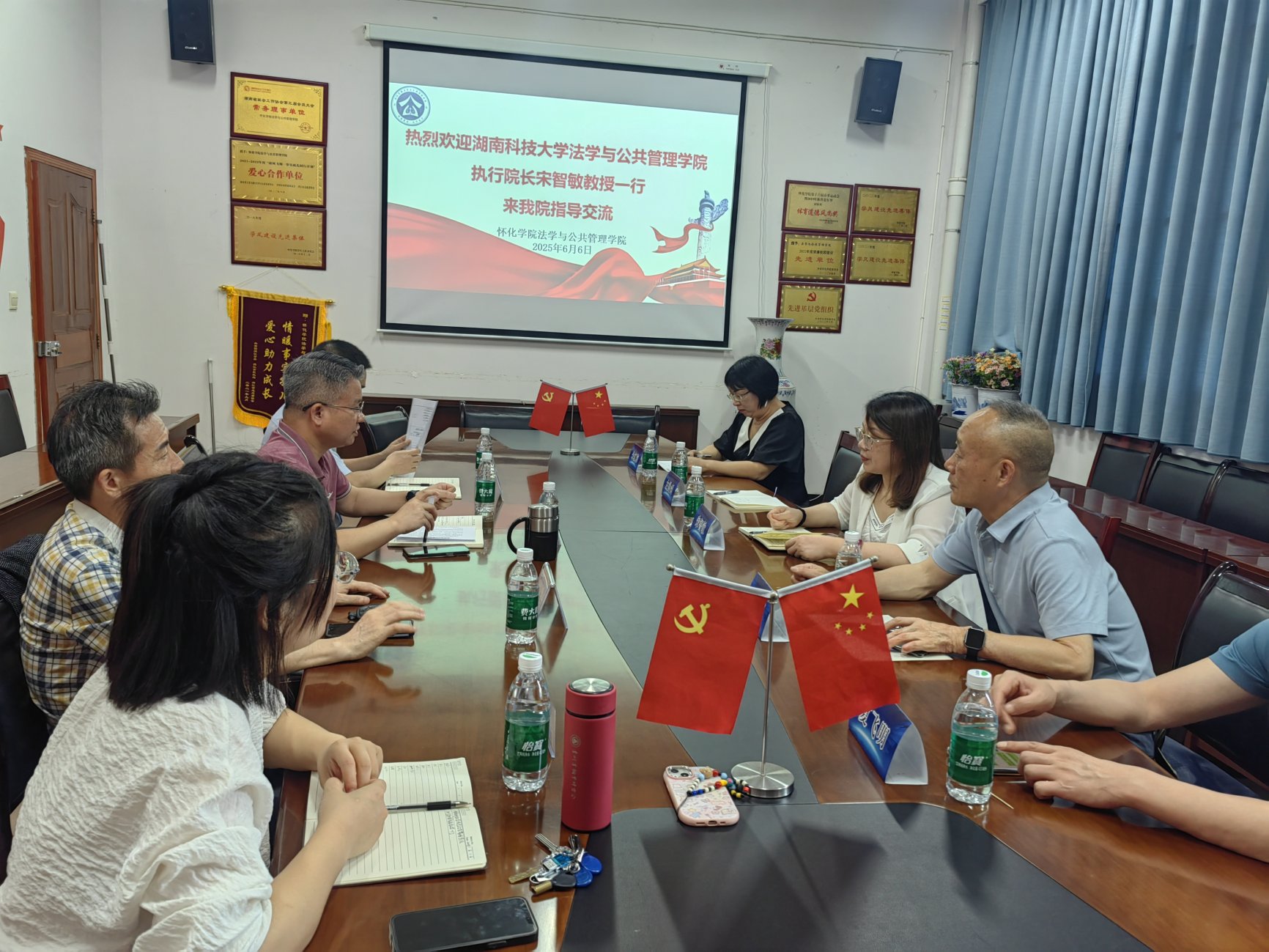 6月6日,我院招生宣讲团队在怀化学院展开招生宣讲与交流,怀化学院法管学院院长郑代良教授等非常重视本次招生宣讲,宋智敏副院长肯定怀化学院法管学院的生源质量,希望怀化学院法管学院进一步推动学生报考我院研究生的工作,并表示我院7月份即将展开的夏令营营员资质优先考虑优秀报考学生。