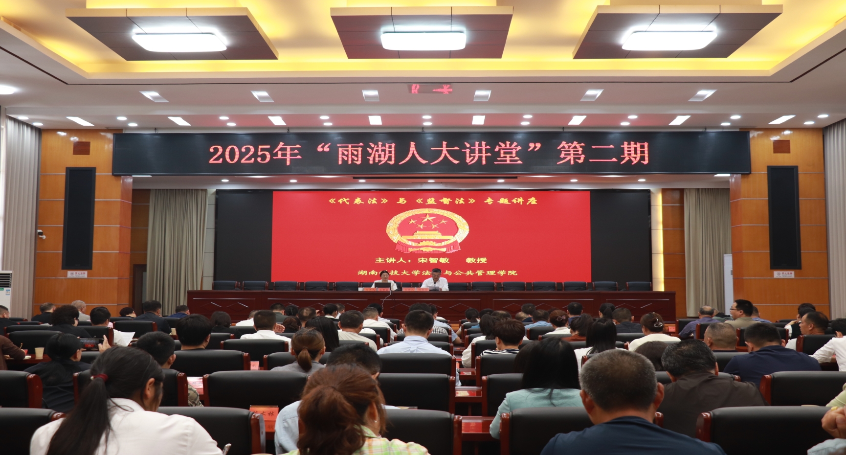 为了深化法治意识,提升履职能力,助力新时代人大监督工作高质量发展,4月28日、4月30日雨湖区人大常委会、湘潭市人大常委会分别举行专题法治讲座,特邀我校yl6809永利副院长宋智敏教授作《代表法》和《监督法》专题辅导报告,雨湖区人大代表、湘潭市人大代表、市区人大机关干部等400余人参加学习。