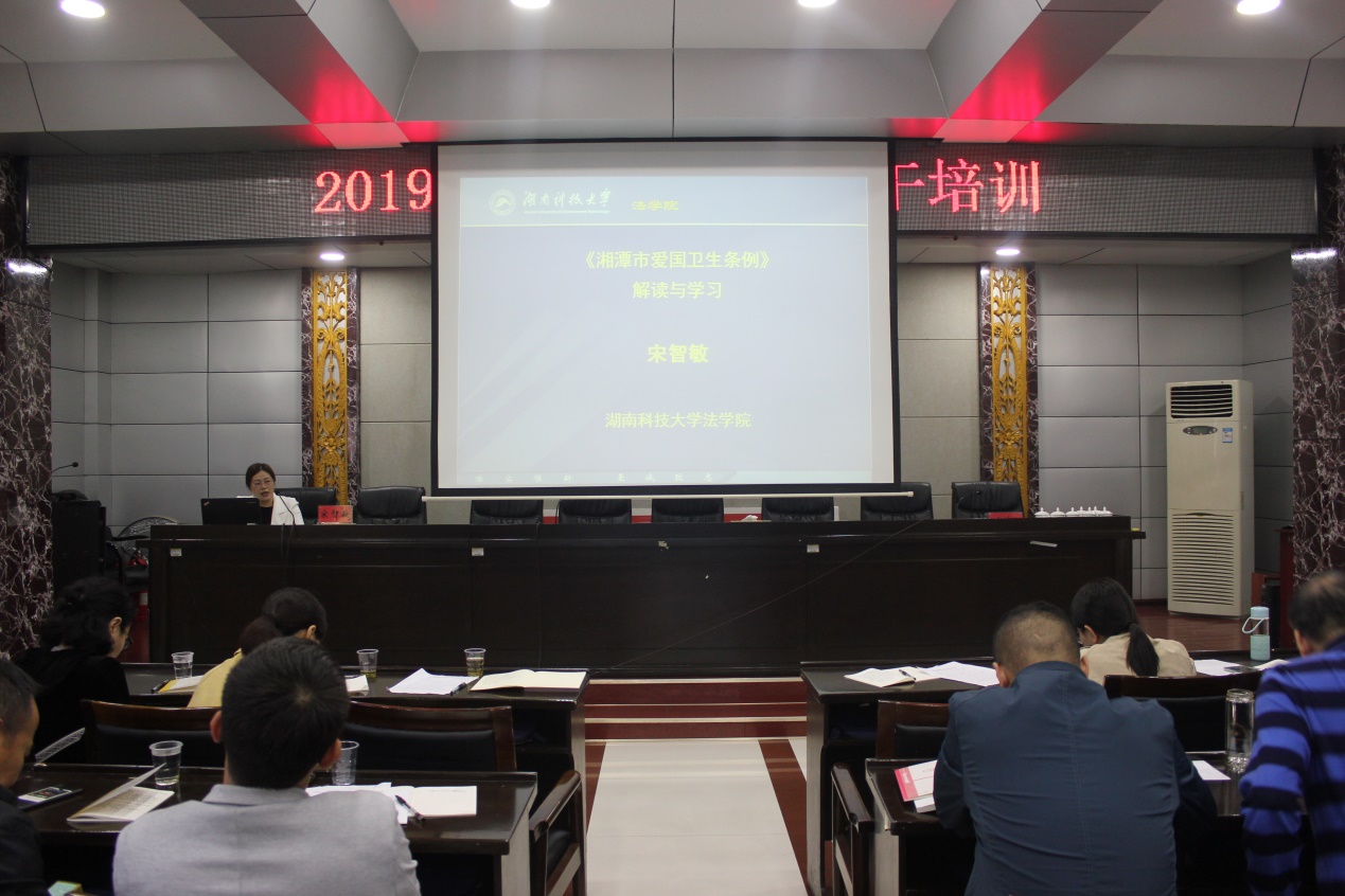 2019年10月24-25日,由湘潭市依法治市领导小组组织的全市法治骨干培训班在湘潭市市委党校开班。我校法管学院徐德刚教授、李云霖教授、宋智敏教授应邀为学员授课。徐德刚院长开展了《宪法修改与实施》、《习近平依法治国思想的内容与实践》的主题报告,李云霖教授做了《政府信息公开条例修改的背景、内容与实施》的专题讲座,宋智敏教授则以法规主持起草者的身份带领大家一起学习了湘潭市第五部地方性法规《湘潭市爱国卫生条例》。三位教授的讲座既有理论高度,又有问题意识,受到了全体学员的高度好评。市司法局、市城管局等单位纷纷表示,今后将进一步加强与我校的合作,实现湘潭法治建设理论与实践的互动互赢。