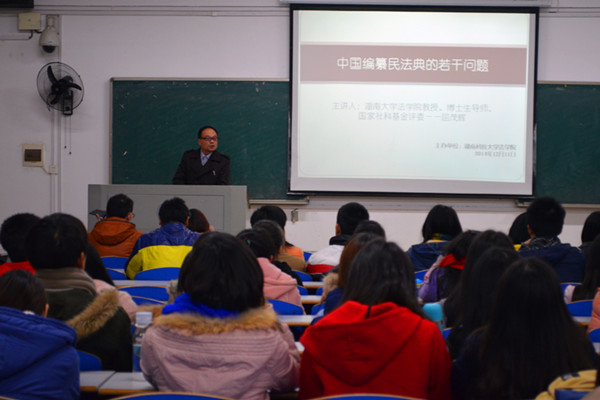 | ——论第十八届四中全会关于“民法典编纂”若干问题  2014 年,在中国共产党第十八届四中全会上,《中共中央关于全面推进依法治国若干重大问题的决定》提出:加强市场法律制度建设,编纂民法典。这意味着我国将开启一个公民权利保护的新时代。为使大家对中央这一重要举措有更深刻的认知和了解,我院有幸邀请到湖南大学法学院教授、博士生导师、湖南省法学会副会长、中国法学会理事屈茂辉于12月11日晚7时30分在九教405为法学专业学生做讲座。到场嘉宾有副院长喻军、胡正昌,法学系主任刘敏、邱帅萍,法学系老师李云霖、夏飞明,朱红梅。 屈教授主要围绕“我国民法典编纂问题”,从民法典体系和所含内容、编纂的必要性、本土资源和国外经验怎样结合以及中国民法典编撰的技术路径四个方面与同学们共同学习和探讨。 在谈及民法典编纂的技术路径时,他指出,全国人大常委会法律工作委员会应当在其中扮演重要角色。但从历年的民法典编纂进程来看,他们无法独自承担起编纂民法典的重任,因为我们现在编撰的民法典是体系化的民法典。因此,屈教授建议:“应该像宪法一样成立民法典起草委员会,并使得民法典起草委员会只能成为全国人大法工委领导下的一个专门起草民法典的临时性的,但是又带有专门任务的组织机构。”他指出:“1954年宪法制定就成立了以毛泽东同志为主任的宪法起草委员会,1982年宪法制定成立了以叶剑英同志为主任的宪法起草委员会。因此,应该成立以习近平同志为主任的民法典起草委员会。这样才能在大的事情上有所突破,才能够解放思想。” 他提到的另一个路径便是:认真调查和整理我国现有的这些习惯、判例。要分清发达地区和欠发达地区、分清中心城市和边远地区的习惯差异,这样才能制定符合中国国情的民法典。要想实现精密的、体系化的民法典,这点至关重要。 在之后的讨论环节,一位学生提问到:“法典修改远比单行法修改困难得多,把单行法修改完备,使其更协调,法典的编纂是否就没有必要?”“民法典不仅仅是一个体系问题,还有更重要的宣誓作用。成文法当中的发达国家都有民法典,中国有什么理由没有民法典。从大国走向强国,中国编撰民法典还有重要的政治意义。随着社会主义市场经济的发展,单行法日渐完善,而民法典的编撰,则是为了使其更加体系化。”屈教授这样答道。 (责任编辑:admin) |