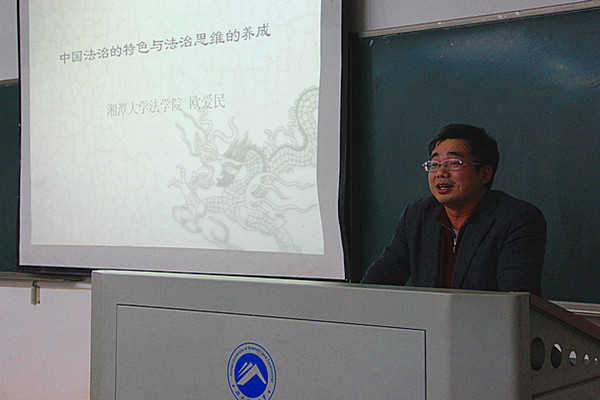 | 中国共产党十八届四中全会的召开,《中共中央关于全面推进依法治国重大问题的决定》的宣读,赋予了依法治国更深层次的含义。我院特邀湘潭大学法学院博士生导师欧爱民教授于 12 月 8 日晚 7 点 30 在九教 107 教室做了以“中国法治特点和法治思维养成”为主题的讲座。法学院副院长胡正昌教授主持。 欧 教授以人类社会法治发展的基本规律为切入点,从法治的意义及法治应有意义、我国现在的反腐情况、中国法治特色等方面侃侃而谈。尤其是在谈到中国法治特色时,他从普通法法理治理到行政治理的模式阐述法治的规律,从法治能将权力真正关进笼子里从而提高人们生活幸福指数的角度论述了意义所在,并深刻剖析了法治的总体目标和基本原则。教授幽默的语言,让虽仍处于专业初级学习阶段的同学们也能把握要点、激发求知兴趣。 随后,欧爱民教授还与在场的同学讨论了三个有关宪法与普通法区别的问题,现场气氛活跃。讲座在师生的问答声中结束。 (责任编辑:admin) |