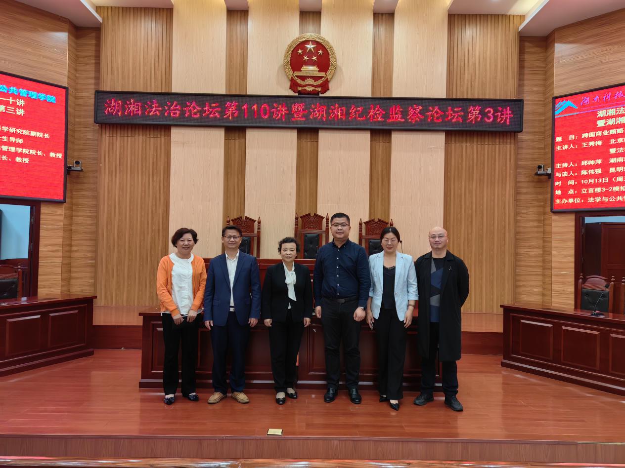 10月13日上午,北京师范大学刑事法律科学研究院副院长暨法学院二级教授、北京师范大学校学术委员会委员、最高人民法院职务犯罪研究基地负责人、中国廉政法治研究会副会长、国际刑法学协会副主席王秀梅教授应邀在立言楼模拟法庭开展《跨国商业贿赂与企业合规》主题讲座。出席本次讲座的有昆明理工大学法学院副院长陈伟强教授、湖南科技大学yl6809永利院长邱帅萍教授、副院长宋智敏、徐德刚教授、胡之芳教授、蒋兰香教授等院领导老师及我院师生近200人参加了讲座。本次讲座由学院院长邱帅萍教授担任主持人,陈伟强教授担任与谈人。
