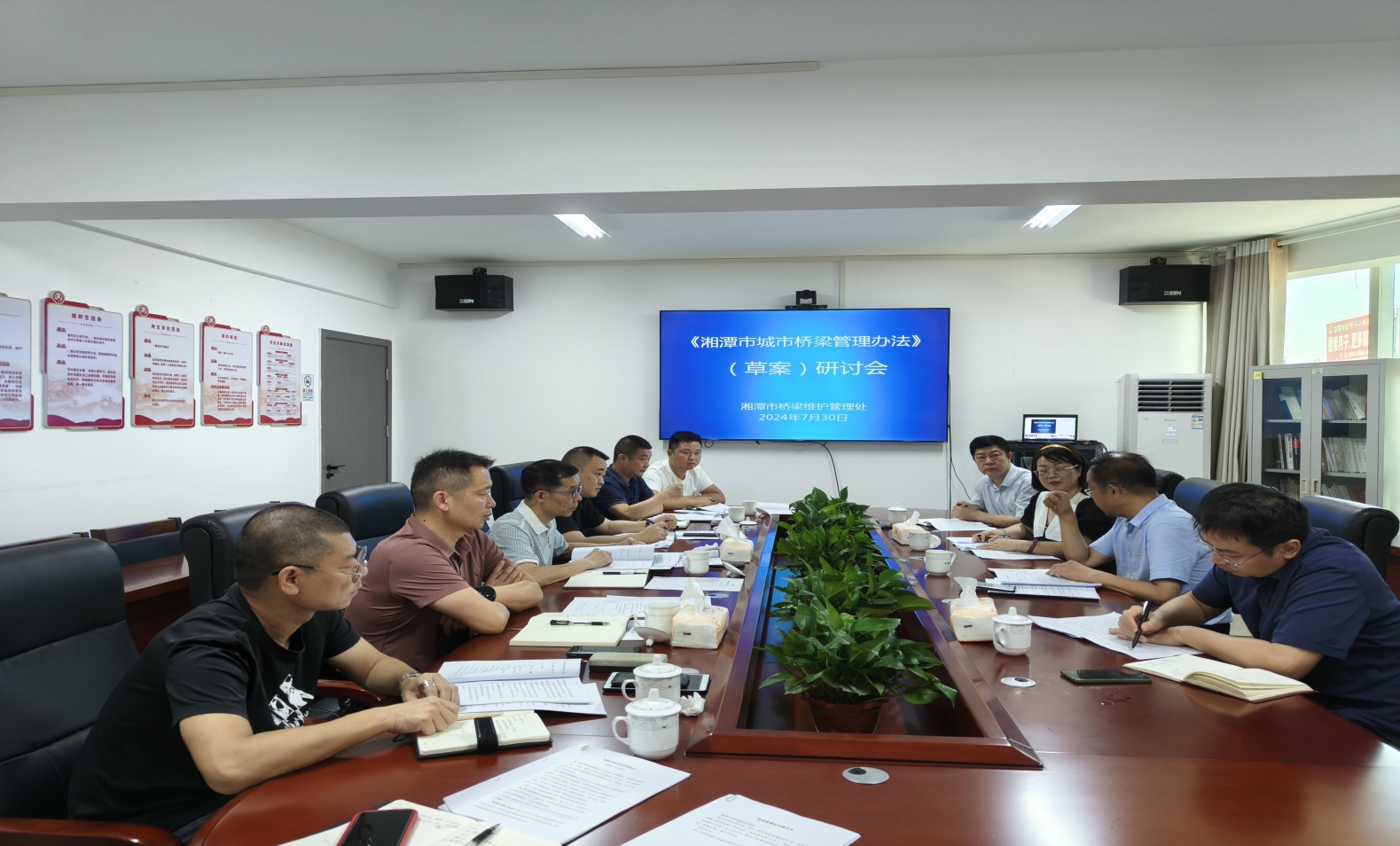 2024年7月30日上午,《湘潭市城市桥梁管理办法》草案研讨会在湘潭市桥梁维护管理处召开。湘潭市司法局、市城管局、市桥梁维护管理处等单位参加了会议。我院副院长宋智敏教授作为第三方起草单位负责人带队出席了本次会议。会议学习了《城市道路管理条例》《城市桥梁检测和养护维修管理办法》《湖南省行政规范性文件管理办法》等法律和政策,并对《湘潭市城市桥梁管理办法》草案进行了深入研讨。