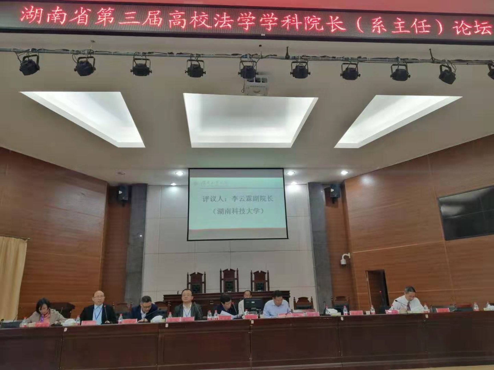 2019年10月25日,湖南省第三届高校法学学科院长(系主任)论坛在湖南工业大学隆重举行。本次会议由湖南省人民政府学位委员会办公室主办,湖南工业大学承办。武汉大学、湖南大学、中南大学、湘潭大学、湖南师范大学等高校法学同仁参加了本次会议,共同探讨“法学实践教学模式创新理论与实践”议题。我院李云霖副院长、胡正昌副院长、吴四江教授、系主任马驰升博士、实验中心主任向明老师、李倩博士应邀参加本次论坛。