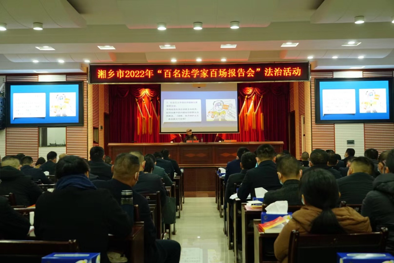 为进一步增强领导干部法治意识,提高依法治理水平,国家宪法日前后,湘乡市举办了“百名法学家百场报告会”法治宣传活动。12月6日下午,我院徐德刚教授应邀参与宣讲。讲座由湘乡市委副书记、政法委书记谢岸烨主持,湘乡市科级以上干部160余人参加。