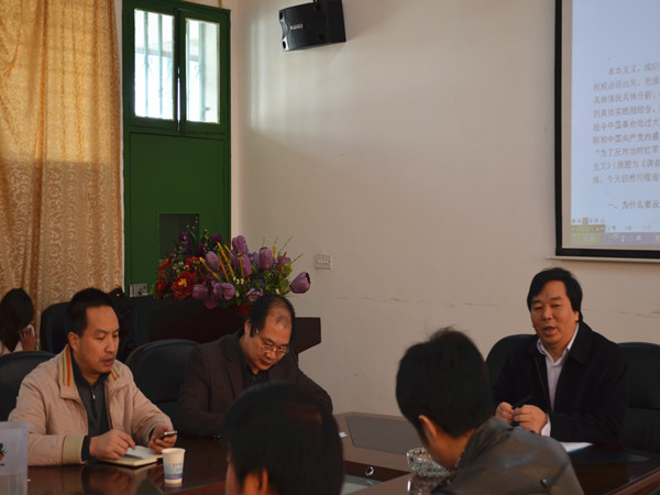 | “没有调查,就没有发言权,我们必须坚持实事求是,一切从实际出发的思想路线。”11月29日上午8点半,中国社科院孙伟平教授应我院邀请,在十教606为2011级思想政治教育专业的学生献上一场精彩的讲座。教务处副处长罗建文老师、副院长陆自荣老师、喻军老师、政治系系主任毛小平老师等出席本次讲座。 孙伟平教授结合对毛泽东《反对本本主义》一书的感悟,深入浅出地分析了“本本主义害死人”。首先,孙教授分析说明中国的社会主义探索之路曾深受西方资本主义社会价值观的影响,并突出强调了中国目前整个社会道德价值观存在危机,中国的内部文化价值观和社会价值观都存在本本主义现象。紧接着,孙教授结合中国艰难的革命历程和社会主义建设实践的探索,具体解读了毛泽东的实事求是思想,强调我们这条革命道路是在反对本本主义的过程中找到的,无论什么时候,我们都要搞清基本具体的情况,结合实际制定方针政策。 最后,罗建文老师总结道:“孙教授的讲解鞭辟入里,从哲学的思维角度深刻分析了毛泽东的反对本本主义思想,值得大家在专业学习中认真思考和反省自我, 希望大家能真正做到不唯上、不唯书、只唯实,认真贯彻落实实事求是的思想路线。” (责任编辑:admin) |