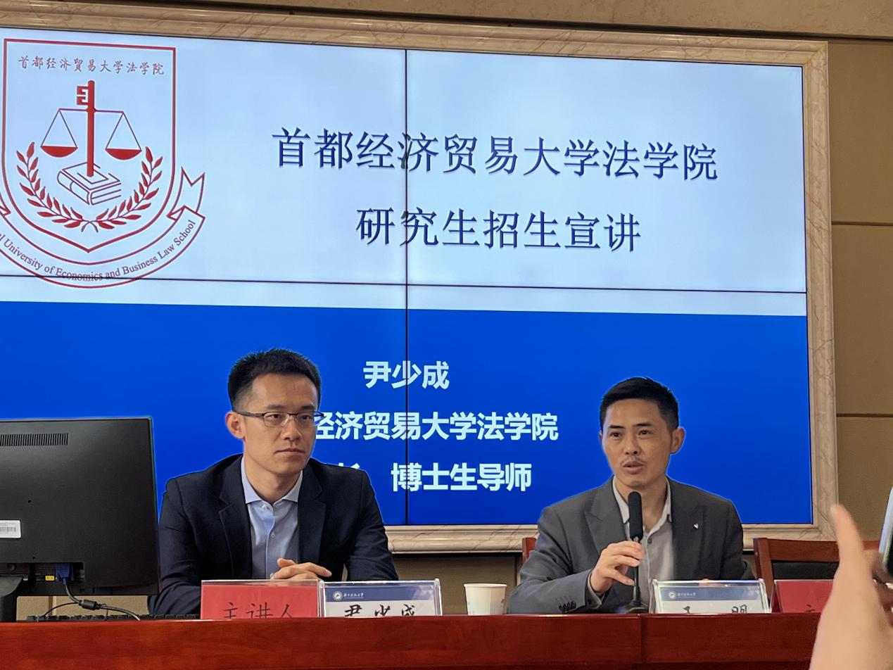 首都经济贸易大学法学院副院长尹少成一行莅临我院调研宣讲