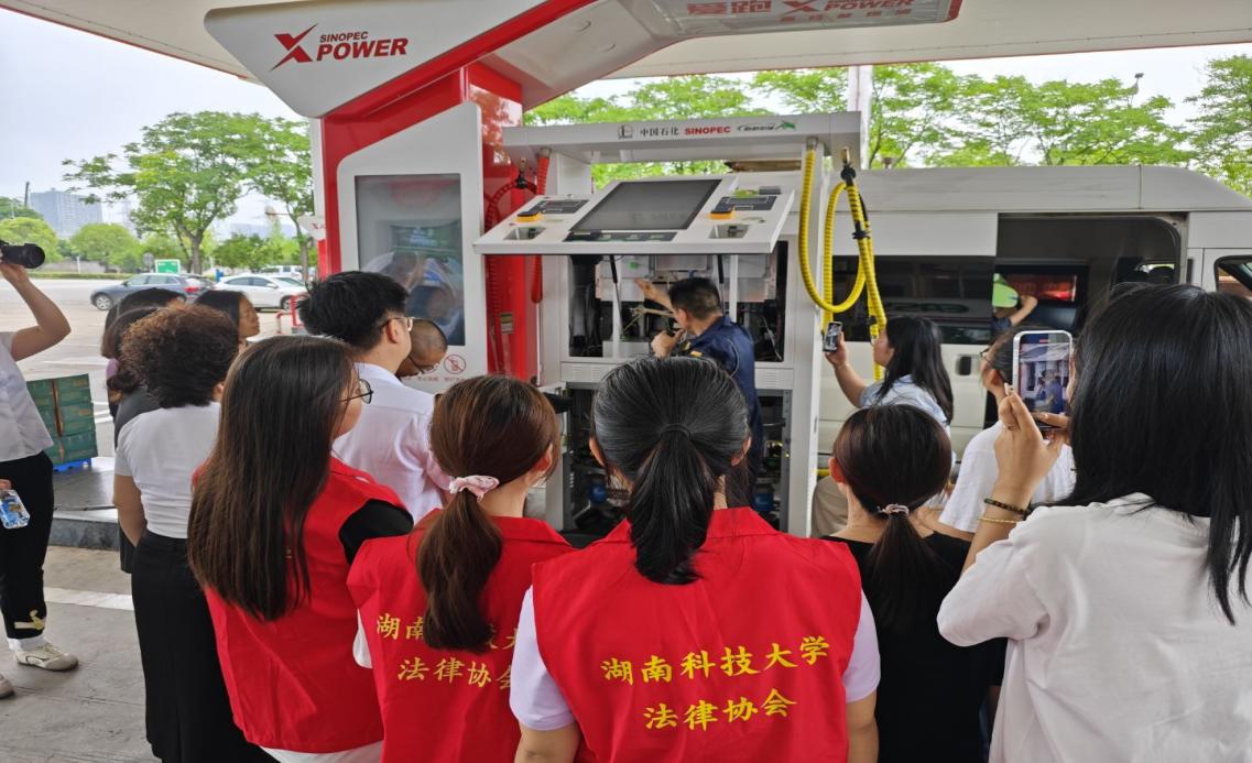 5月19日上午,在《消费者权益保护法》颁布三十周年之际,湘潭市市场监督管理局联合中国石化湘潭石油分公司,于中国石化湘潭东方加油站举办“加油机计量检定开放日”主题活动,湘潭市市场监督管理局、市工矿中心相关领导和工作人员,中国石化湘潭石油分公司相关领导和工作人员,消费者和媒体代表若干人等悉数到场,湖南科技大学法律协会四名志愿者受邀参与法律宣传。