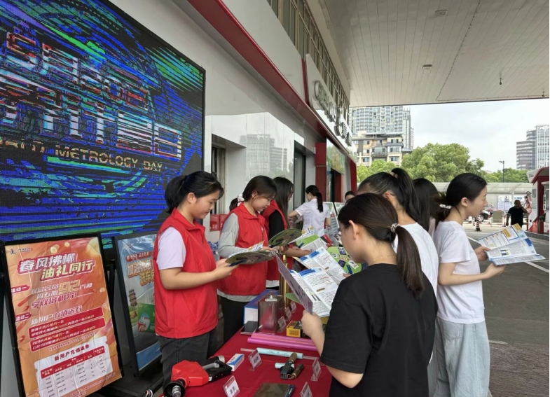 活动于5月19日上午11时准时启动。签到环节中,工作人员引导来宾有序签到,湖南科技大学法律协会的普法志愿者们热情地帮忙发放《加油机计量检定指南》《消费者权益保护手册》等资料,同步为市民解读手册中《计量法》第十六条“禁止破坏计量器具准确度”等核心条款。