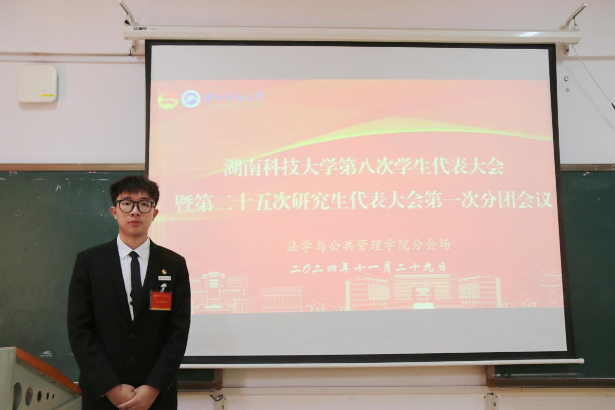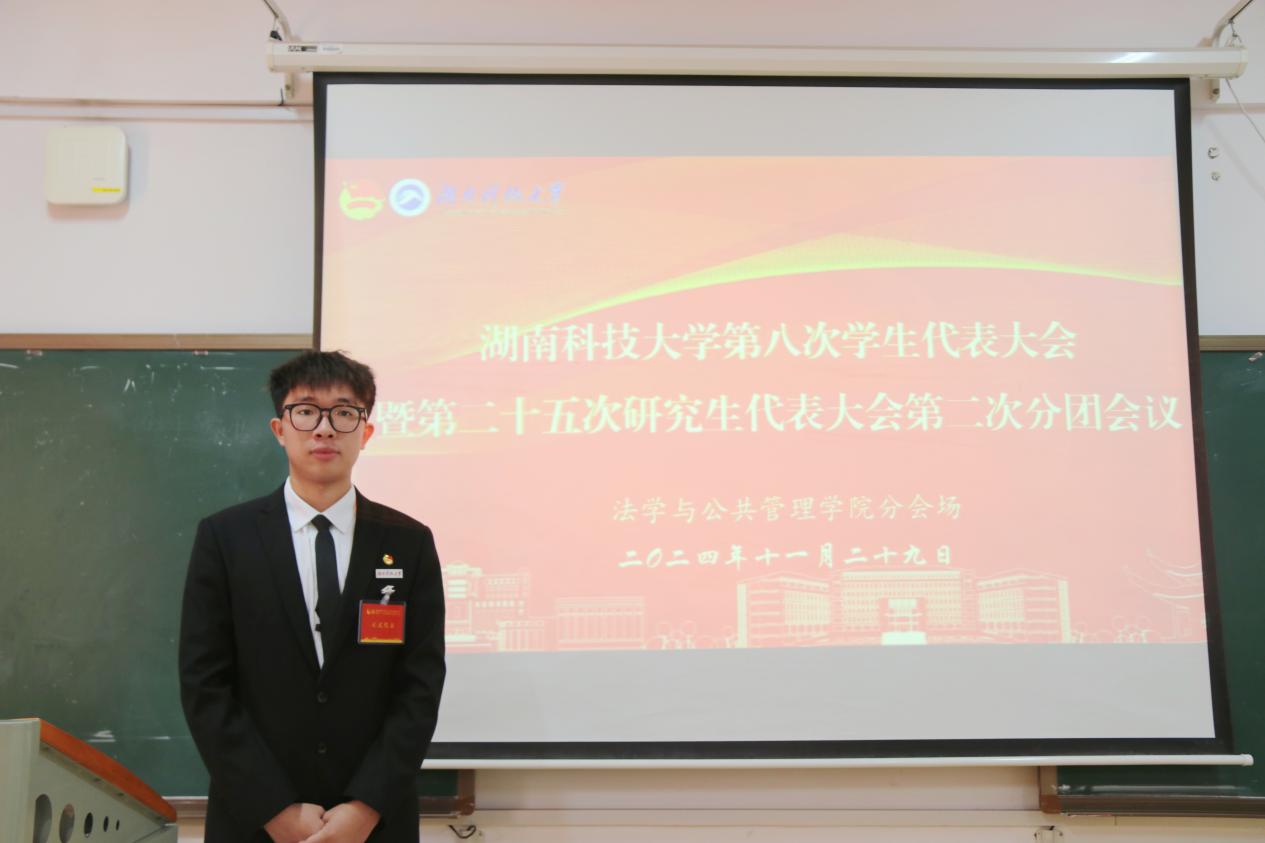 为深入学习贯彻落实党的二十届三中全会精神和习近平总书记在湖南考察时的重要讲话精神,全面实现“三高四新”美好蓝图,11月29日下午,我院在立言楼A206召开了湖南科技大学第八次学生代表大会暨第二十五次研究生代表大会第一、二次分团会议。会议共有13位学生代表到场参加,由我院学生会执行主席、第十八代表团团长高迪、研究生会执行主席裴子程共同主持。