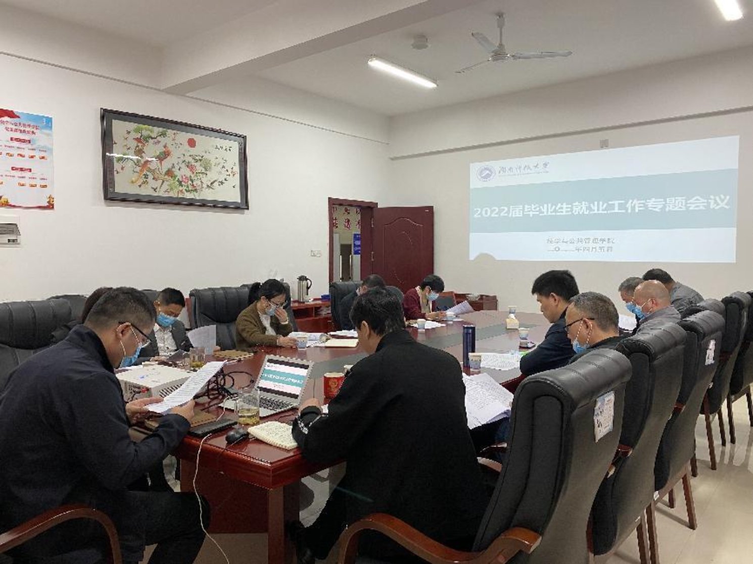 法学系李倩、胡正昌老师发言,他们表示要在最后考研复试和调剂阶段再为学生加把劲;宋智敏、夏飞明老师表示要进一步做学生思想工作,鼓励他们正视企业提供的岗位,敢于实现社会人的角色转换;系主任吴四江老师表示会进一步关注法学专业学生调剂和重点关注学生群体的就业帮扶工作;系主任戴年红老师信心满满,相信公共事业管理系能达成各项就业目标值。