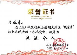 【 图为吕亚秦获校级“ 返家乡 ”优秀个人 】