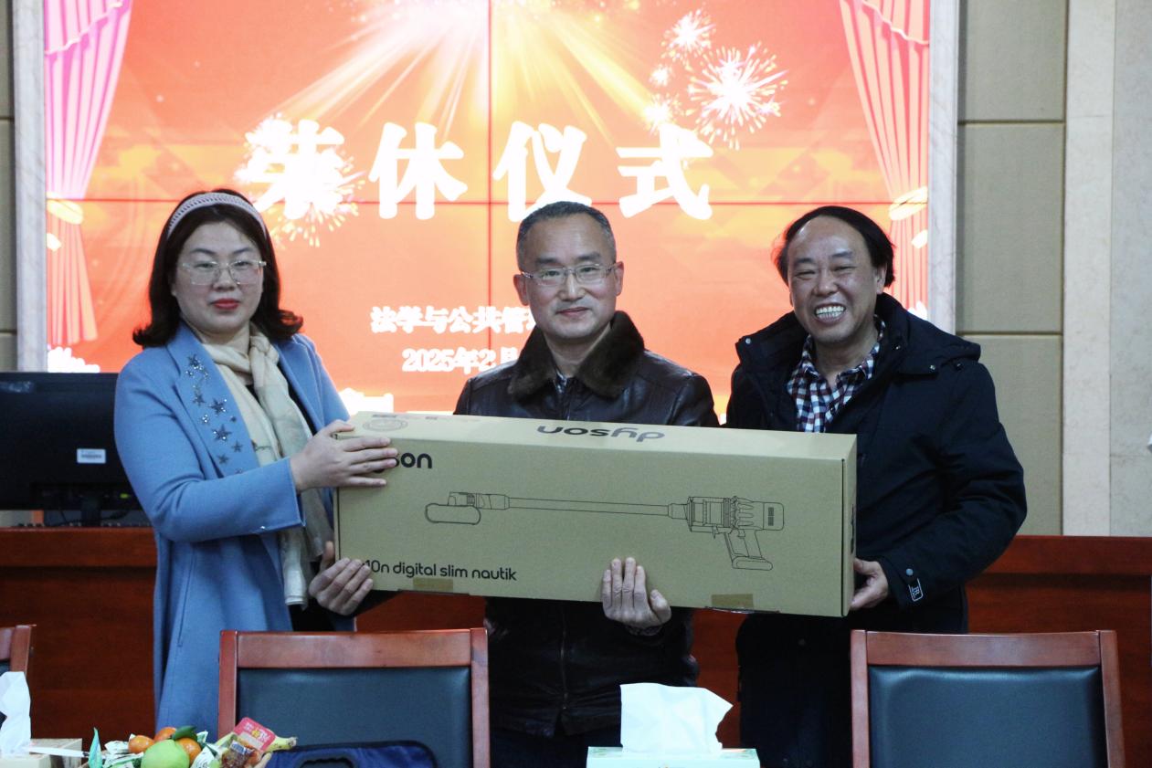 随后,徐德刚教授发表荣休感言,回忆起自己在学校经历的难忘岁月,讲述了和同事并肩作战的历程,以及陪伴同学们共同成长蜕变的动人故事。话语间满溢着对教育事业的赤诚与热爱,对学院班子、全院老师的感恩之情,同时表达了对法管学院未来蓬勃发展的美好期许。校友代表上台,为徐教授送上精心准备的礼物,以表达对恩师的敬意与感恩。自由交流环节中,学院老师们纷纷发言,真挚感谢徐德刚教授在学习、工作以及生活各个方面的悉心指导与关怀。最后,宋智敏副院长进行了总结发言,高度赞扬了徐德刚教授谦逊和蔼、真诚待人的品质,以及在教育教学、学院发展等多方面作出的突出贡献。