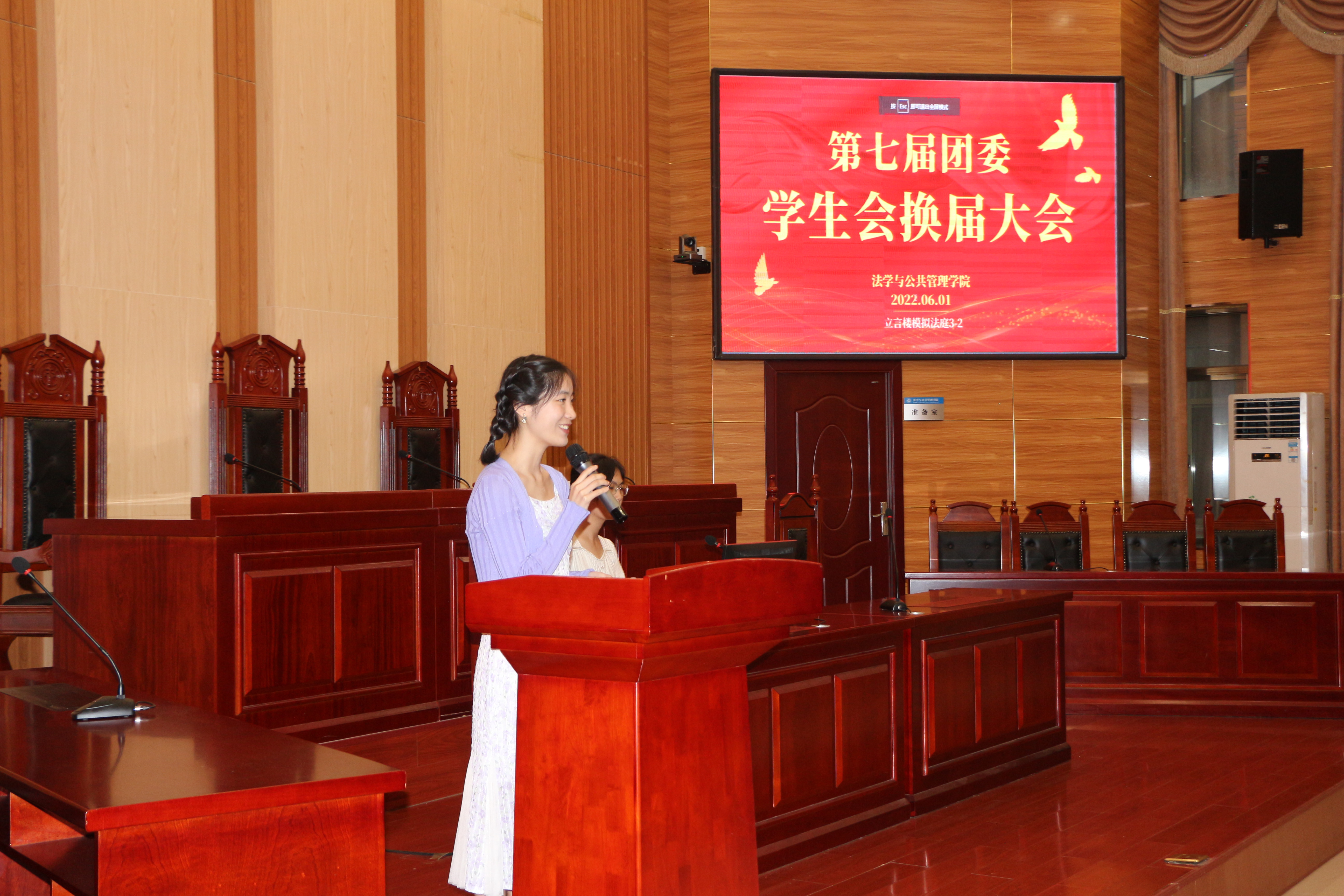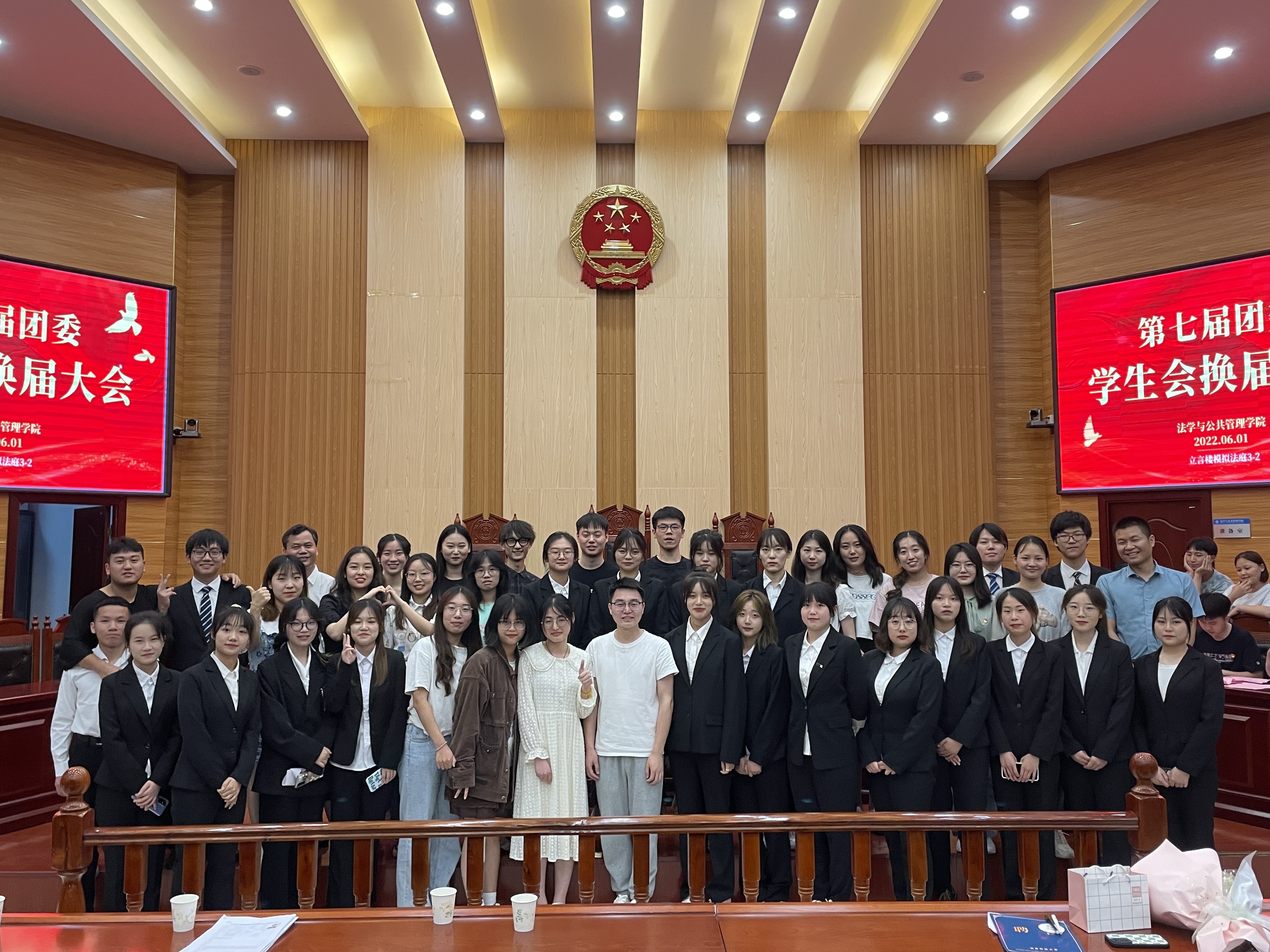 为进一步推进学院学生工作的民主化、科学化、规范化,更好地发挥团委学生会的桥梁和纽带作用,实现其自我教育、自我管理、自我服务的职能,6月1日晚,yl6809永利在立言楼3-2模拟法庭举行了第七届团委学生会换届大会。出席本次会议的有学院党委副书记叶军、学工办副主任郭志军、辅导员李斌、第六届团委学生会主要干部、学院19-21级各班学生代表。本次会议由第六届团委学生会团委第一副书记戴钰莹主持。