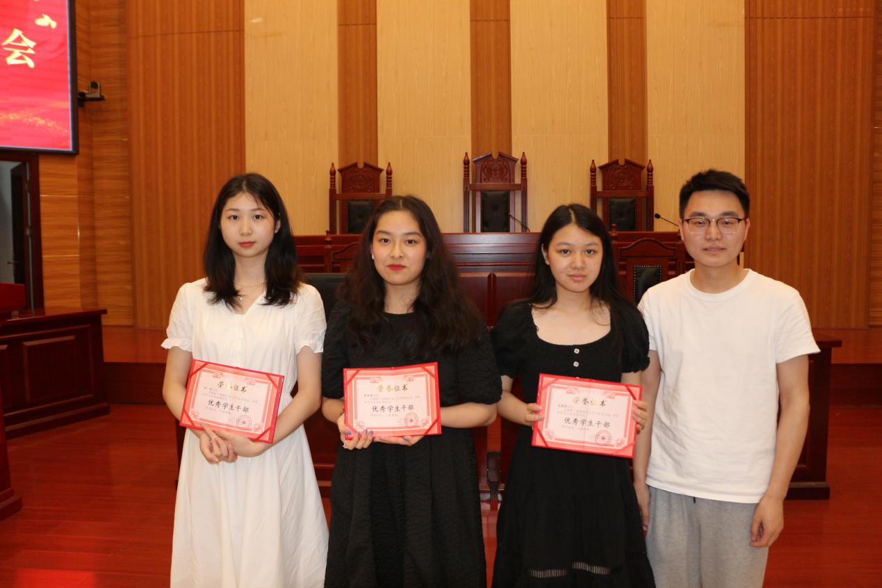 团委学生会执行副主席何希雅为大家宣布了本年度量化考核中的优秀部门、优秀干部及优秀班级名单。本次考核中优秀部门为组织部,优秀干部为田震、郭丽媛、吴慧琳,优秀班级为19级公共事业管理1班、20级法学2班、21级法学4班。我院领导及老师分别为他们颁发了证书。
