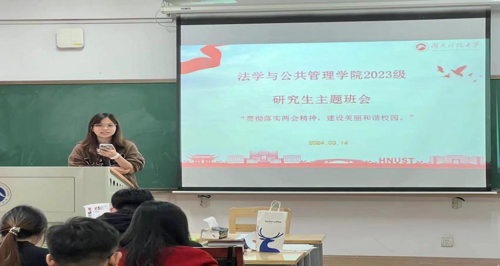3月14日下午,yl6809永利2023级研究生关于“贯彻落实‘两会精神’,建设美丽和谐校园”主题班会在立言楼A105举行。