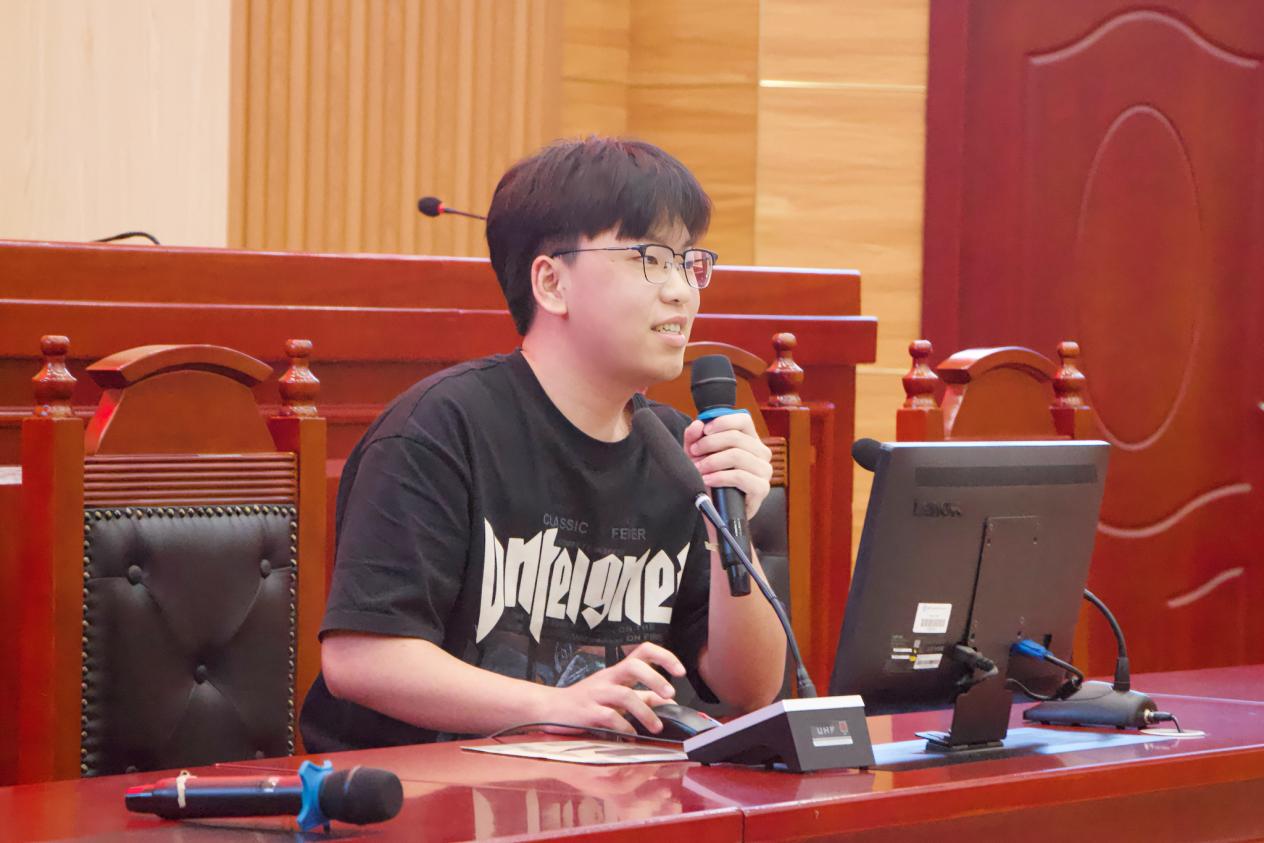 米少英则侧重于法庭辩护人的角度,从辩护策略、文书写作、现场庭审三个方面,向学生们展示优秀辩护人的成长路径。他还结合自己的参赛和获奖经历,鼓励即将加入队伍的同学树立信心,勇敢迎接挑战。