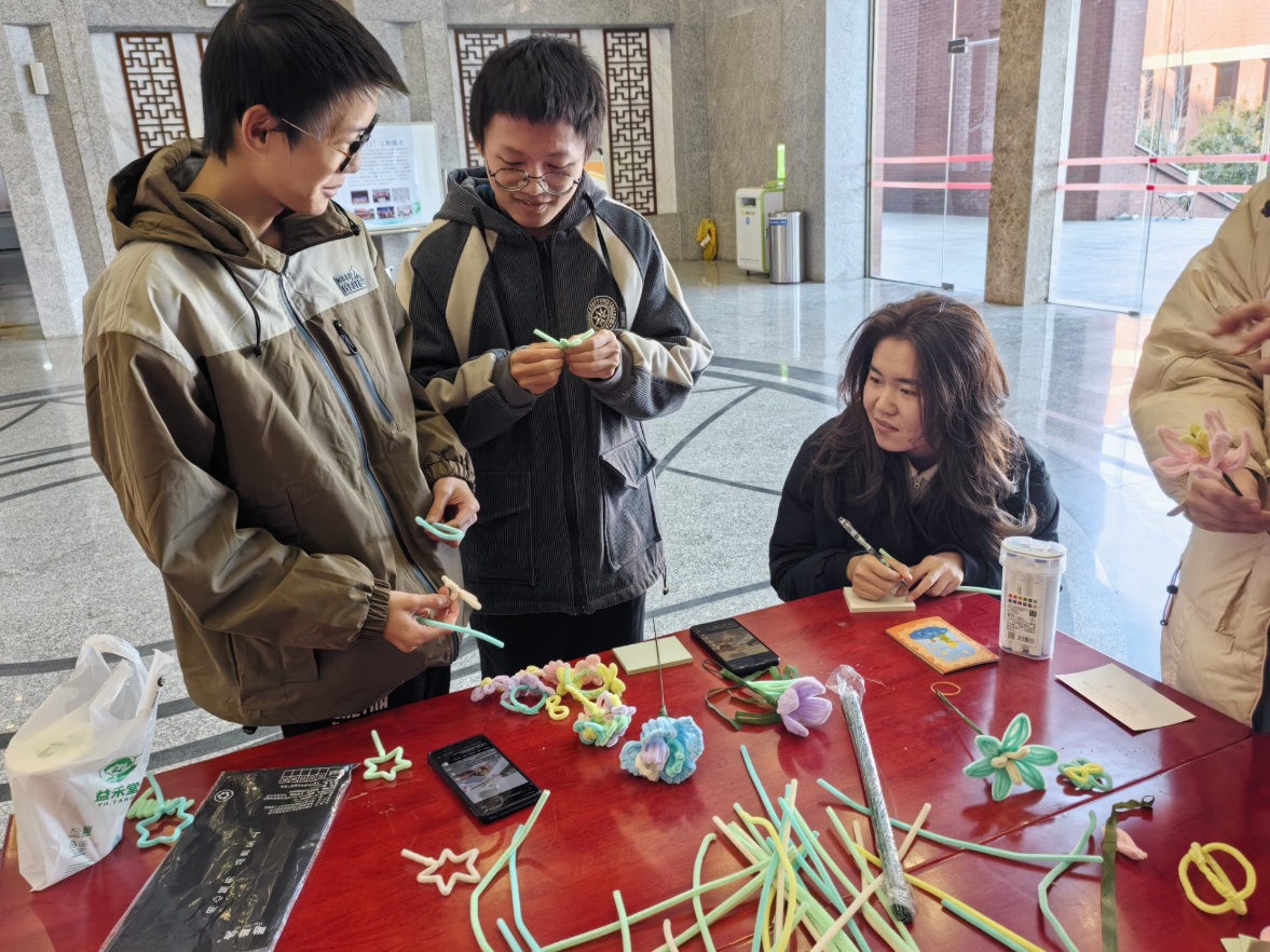 活动现场,色彩缤纷的扭扭棒整齐摆放,等待着参与者们用巧手将它们变成美丽的花束。每位参与者都在便利贴上写下了自己的小故事、愿望或者祝福,以此换取扭扭棒材料。大家纷纷沉浸在创作之中,用心将扭扭棒弯曲、缠绕,而作为交换,他们还能获得一张写满祝福的明信片。