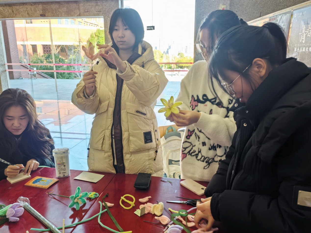 同学们在制作扭扭棒花束