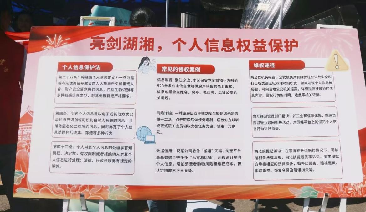 本次活动以““亮剑湖湘,织密个人信息法治防护网””为主题,通过展板普法,横幅宣传,现场法律咨询服务等形式,让居民更好地了解个人信息权益保护相关知识,为居民答疑解惑,强化其信息保护意识;通过摆点游戏宣传,激发居民参与热情,营造良好的社会氛围。
