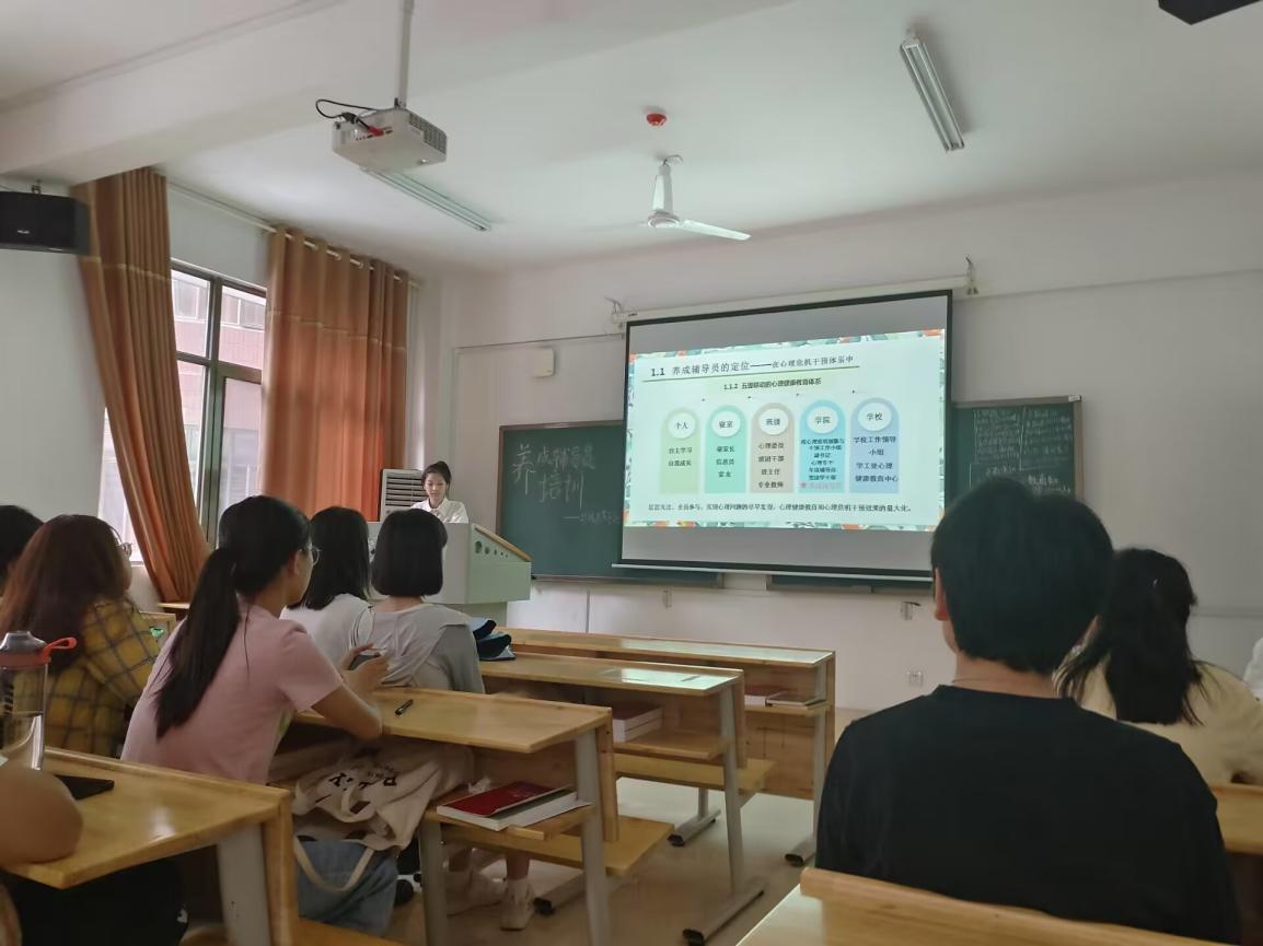 为更好地发挥养成辅导员在学生与学院之间的桥梁作用,营造良好的班风、学风、校风,增强养成辅导员关注新生心理健康状态的意识,我院心健部在学院的指导下于2023年9月12日14:00在立言楼A213开展了养成辅导员培训活动,给予了即将上任的新生助班更多的动力和勇气。