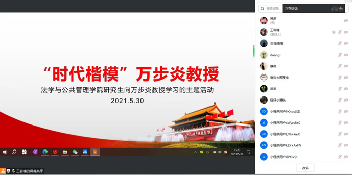 为深入学习“时代楷模”万步炎教授矢志报国、勇于创新、潜心育人的精神,让同学们进一步了解和学习我们身边的“时代楷模”万步炎教授的先进事迹,5月30日,我院组织了全体研究生线上观看《时代楷模发布厅》之万步炎同志先进事迹。