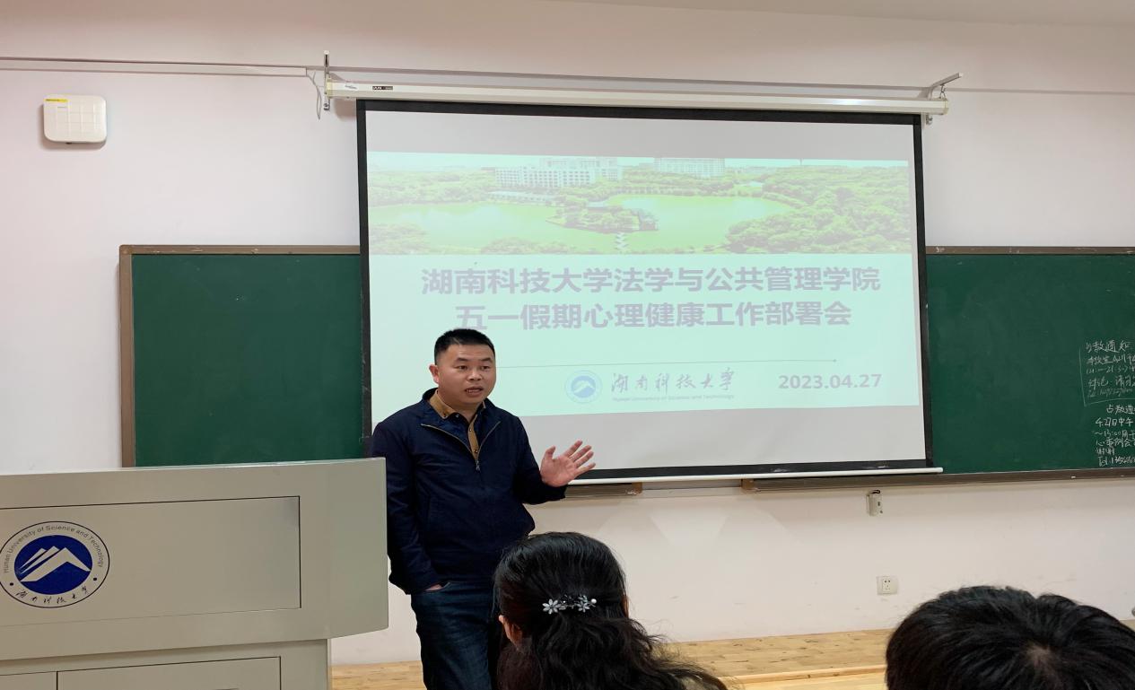 为了便于跟进同学们的心理健康状况,推进并切实做好假期学院的心理健康工作,湖南科技大学yl6809永利心健部于4月27日中午召开五一假期心理健康工作部署会。此次会议由彭立春老师主讲,学院党委副书记范军豪、辅导员彭钰会老师出席会议,部分学生代表与会。