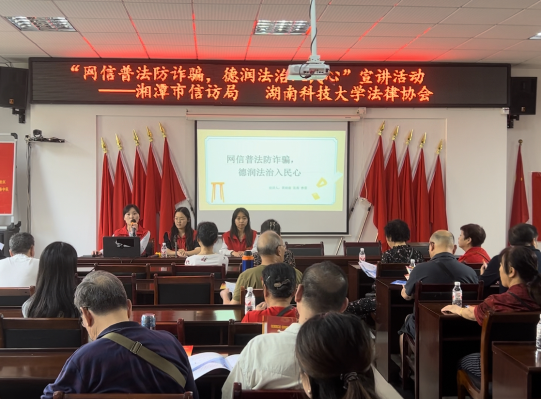 9月26日,法律协会志愿者受湘潭市信访局邀请前往岳塘区霞城街道牡丹社区开展预防电信诈骗主题宣讲。志愿者们围绕《反电信网络诈骗法》《网络安全法》等法律法规为居民们普及网络安全知识,通过案例讲解提醒居民们增强安全防范意识,用有效手段预防电信诈骗。