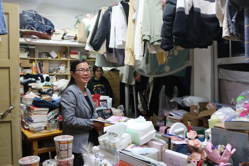在查寝过程中,有许多寝室只有一到两人“留守”,具体了解后才得知,诸多同学此时正在图书馆学习。范书记对这一行为大加赞赏,同时,她鼓励同学们努力考研,结伴考研,相互鼓励,共同进步,希望各位同学能够为考研早做准备。彭老师也耐心地询问同学们的学习生活状况,认真倾听同学们的心声,以尽最大努力为同学们提供帮助。最后范书记也强调,“大学这么多人,来自五湖四海,能够成为室友也是一种缘分。大学四年,无论是生活上,学习上,感情上,心理上,彼此之间都应该互帮互助”。同学们面对老师们亲切的面庞,倾听着关心的话语,纷纷点头,望向身旁的室友,无不倍感温暖。