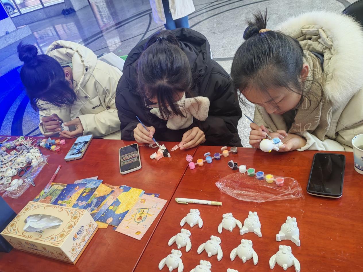 特色活动开展前,我院心健部成员认真做好准备工作,紧密围绕“心向暖阳,沐光而行”心理健康周主题,以“我手写我心,我手绘我意”的形式帮助同学们描摹光影,触摸欢欣。在活动现场,我院心健部准备了许多明信片、石膏娃娃以及各类小礼品,同学们俯首在明信片上写下心中向往与无私祈愿,又挑选出专属于自己的石膏娃娃和颜料,现场描绘出心目中娃娃最可爱的模样。活动过程中,同学们安静地涂画,不时翘起嘴角微笑,活动现场充满愉快和谐的气息。赤橙黄绿青蓝紫,斑斓多彩,统统覆盖于纯白石膏之上,同学们用画笔描绘飞扬的朝气、为颜料注入涓涓的希冀、以欢笑增添生活的乐趣!