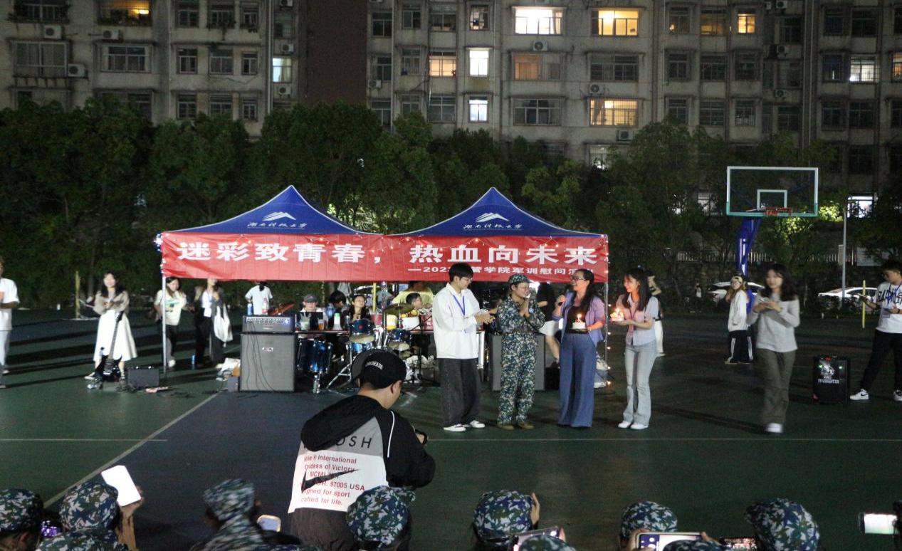 金秋九月,迷彩绚烂,2023级的新生正在接受着军训带来的重重考验,为舒缓新生在军训中紧张焦虑的情绪,鼓舞新生在军训中锻炼身体与精神的新士气,yl6809永利于9月26日19:00在五区篮球场举行了军训慰问演出活动,我院党委书记郑海祥老师、党委副书记范军豪出席本次活动,辅导员郭志军老师、彭钰会老师以及其他任课老师等共同参加此次活动。2023级新生肖广翔、曹琼宇、谌婷、姜金育担任本次活动的主持人,他们出色的控场能力使本次军训慰问演出活动获得圆满成功。