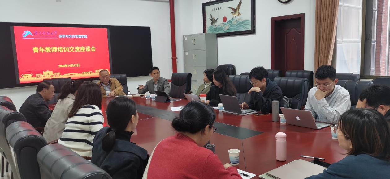 ▲法管学院召开青年教师培训交流座谈会