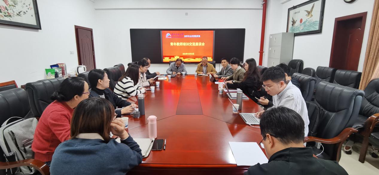 10月22日下午,法管学院在立言楼A427召开青年教师培训交流座谈会。作为本学期学院“教学礼拜周”主题活动之一,本次会议受到学院领导高度重视,会议由教学副院长王明主持,院党委书记郑海祥、校级督导胡正昌、院级督导喻军以及学院近三年新进青年教师参加了本次会议。