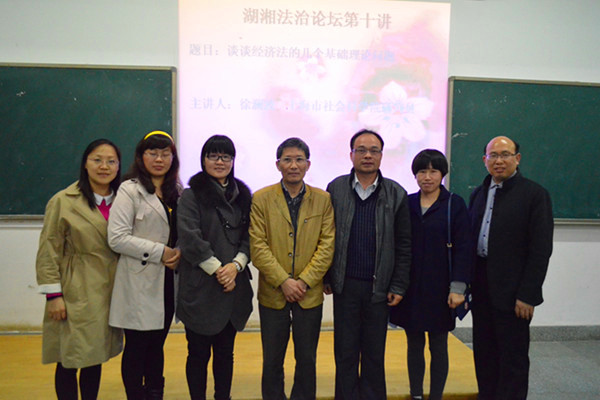 —关于经济法的基础理论问题 3月30日晚7时30分,九教310教室,我院湖湘法制论坛第十讲开讲。此次我们特邀上海社会科学院研究员,上海市法学期团研究会副会长徐澜波先生为主讲人,讲述“经济法的几个基础理论问题”。讲座由喻军副院长主持,胡之芳教授、宋智敏、李云霖以及邱帅萍等老师出席,14、15级法学专业同学到场学习。 徐老师首先就目前学界争论的“经济法究竟是权益本位还是权力本位?”这一问题引导同学们思考经济法的本源。经济法与传统部门法不同,它先有概念、再有实在法。经济法作为独立的部门法,它的本体要素由特定的主体、特有的调整对象、特殊的法律调整手段、实施方式构成。因此,如何正确地运用法律手段调节国家经济也成为学术界重点讨论的问题,同样这也是我们法学专业同学需要思考和解决的问题。在经济法的实施问题方面,徐老师讲道:“经济法一般运用集体诉讼、公益诉讼、个人诉讼等方式混合实施,并且我国在经济法的实施方面,还有许多进步和发展的空间”。 在讲座最后的环节中,徐老师与喻军及李云霖老师探讨了“如何在法律体制下运用经济手段”以及“经济法与政策的联系和差别”等问题。15级法学四班的王静同学在讲座结束后说到,这次讲座提高了她对经济法的理解,为以后学习经济法提前做好了准备。 (责任编辑:admin) |