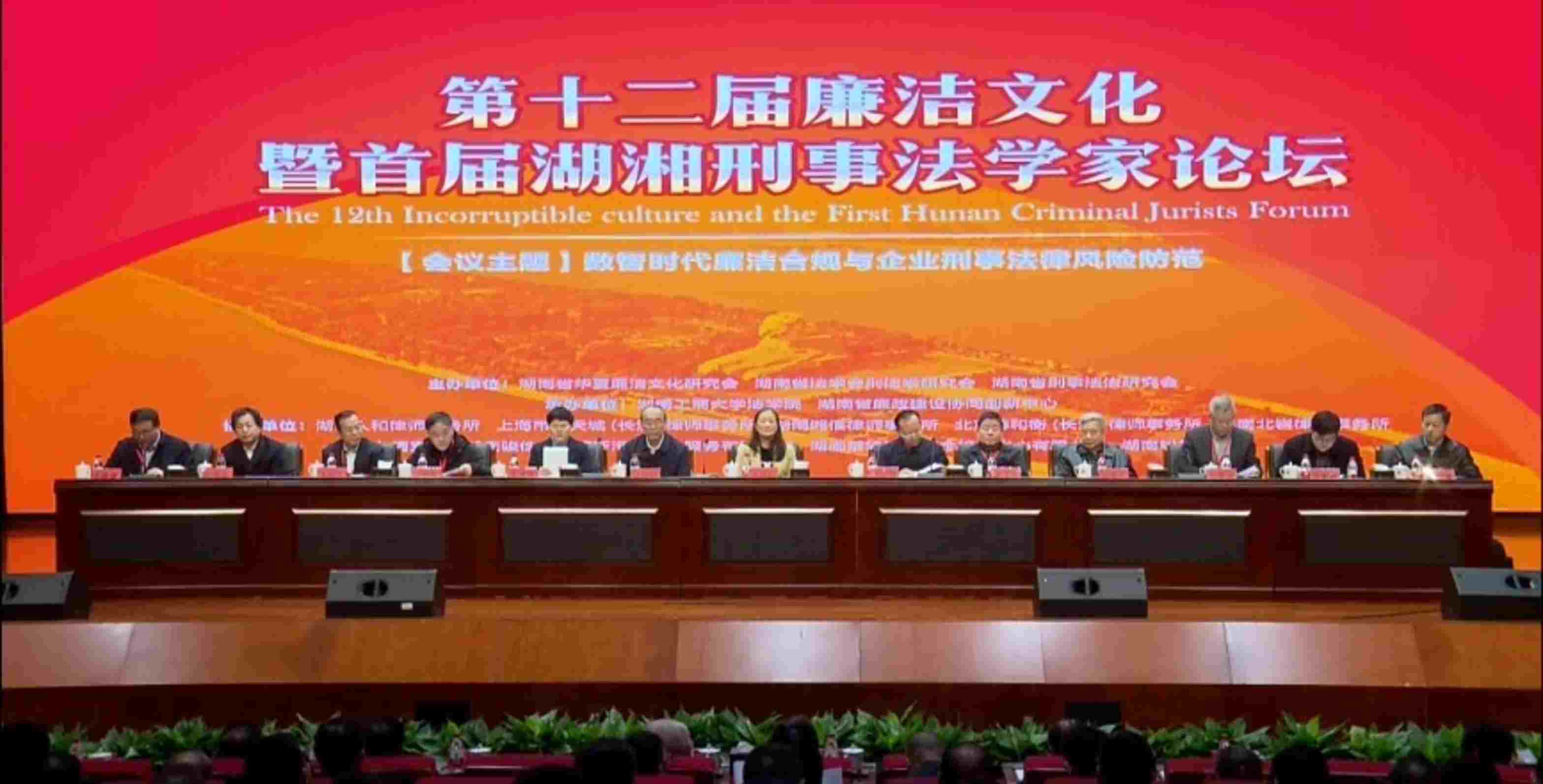 2023年12月3日,由湖南省华夏廉洁文化研究会、湖南省法学会刑法学研究会、湖南省刑事法治研究会主办,湖南工商大学法学院、湖南省廉政建设协同创新中心承办的“第十二届廉洁文化暨首届湖湘刑事法学家论坛”在长沙举办,论坛主题为“数智时代廉洁合规与企业刑事法律风险防范”。来自中国人民大学、北京师范大学、武汉大学、复旦大学、东南大学、湖南大学、中国政法大学、华东政法大学、湖南师范大学、湘潭大学、湖南科技大学等高校的湖湘刑法学家以及湖南、上海等地的各级法院、检察、监察等部门、长沙各律师事务所的刑事实务专家齐聚一堂,共同探讨刑事合规与法律风险防范问题。我院院长邱帅萍教授、学术带头人蒋兰香教授应邀出席会议。