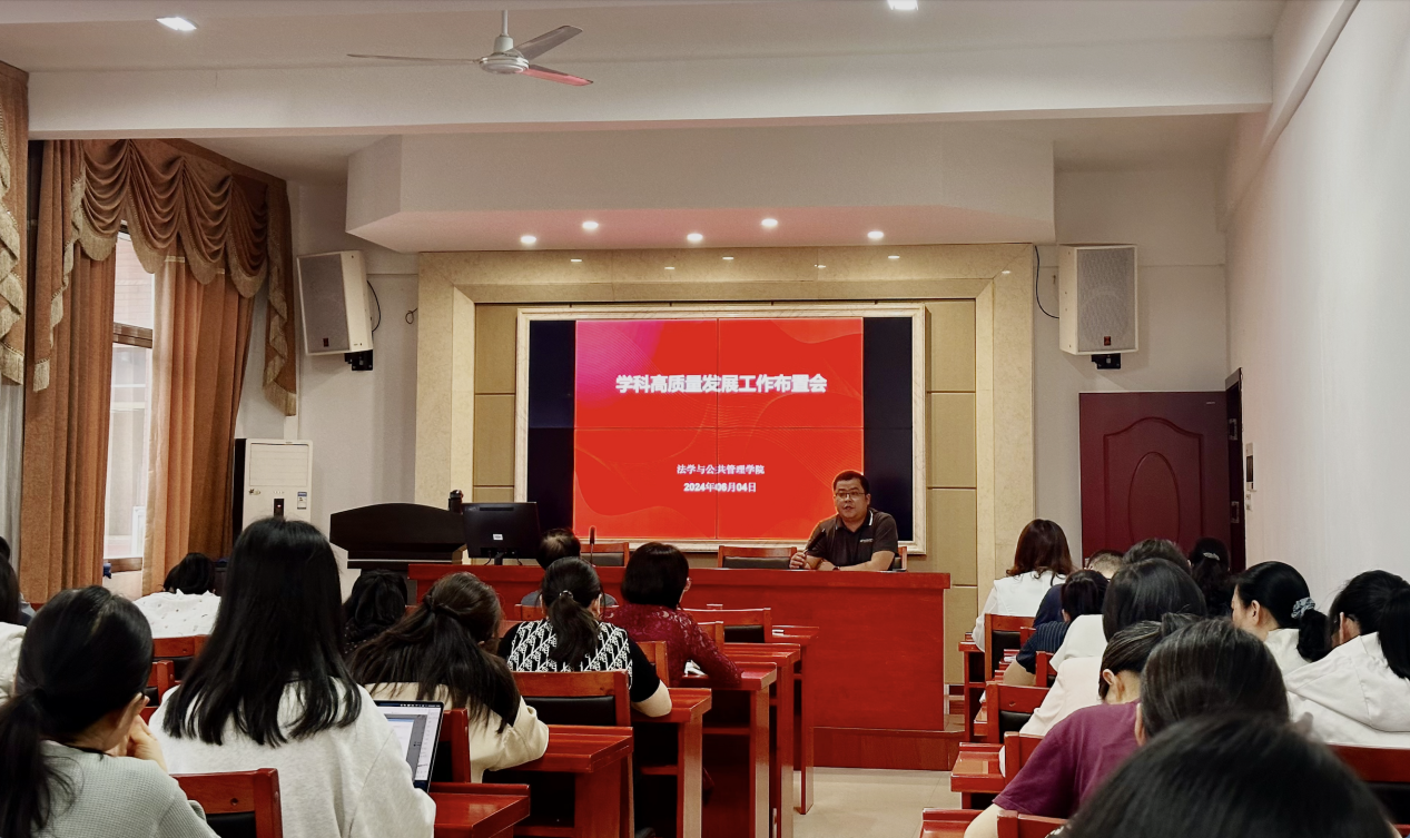 2024年6月4日下午,yl6809永利全体教职工在立言楼A425召开学科高质量发展研讨会,院长邱帅萍对学院学科高质量发展作出整体部署。