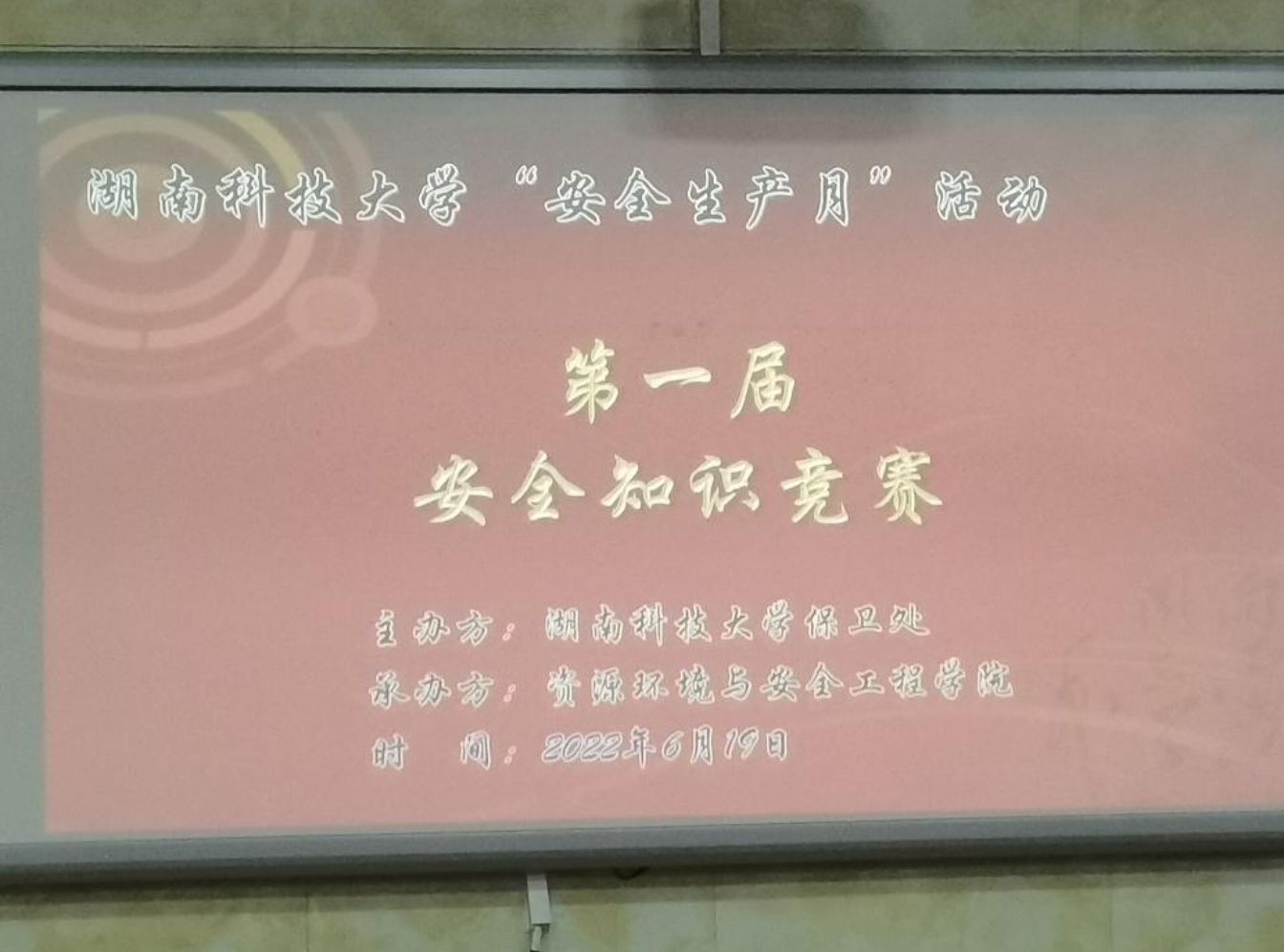 为深入贯彻落实习近平总书记关于安全生产重要论述,提高广大师生安全意识,增强校园安全工作的思想自觉、责任自觉和行动自觉。2022年6月19日晚,由湖南科技大学保卫处主办、资源环境与安全工程学院承办的第一届安全知识竞赛决赛于第四教学楼零合班隆重举行。我院21级法学二班周泰、21级公管一班肖盼和21级公管二班喻姿代表我院参与此次比赛,并最终取得辉煌战绩。