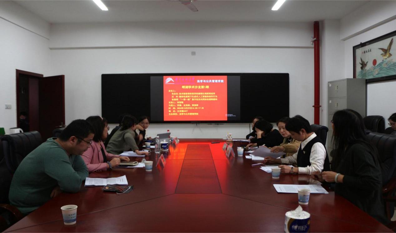 2024年10月29日,一场精彩纷呈的学术沙龙活动在立言楼427室隆重举行。本次活动由我院副院长宋智敏教授主持,黄素梅教授、李倩副教授、左洪剑讲师担任与谈人,邱帅萍院长、胡之芳教授、吴四江副教授、易卫中副教授、刘鄂副教授等我学院领导老师和部分研究生20多人参与了本次沙龙。本次交流会围绕汪叶博士的论文《论整体性原则下生成式人工智能的创作行为》展开,共同探讨人工智能的学术前沿问题。