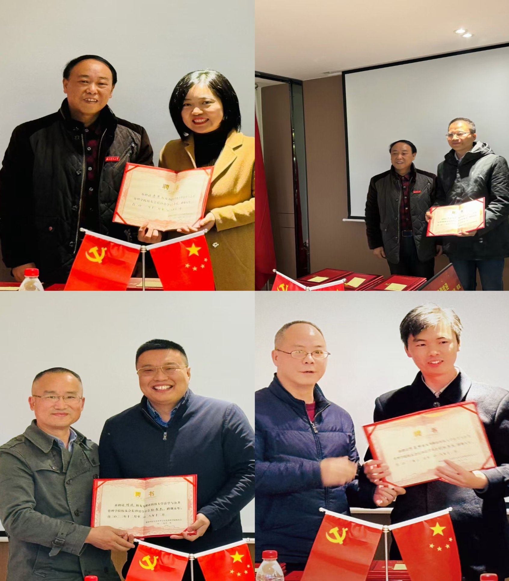 郑海祥书记、徐德刚教授、长沙校友会会长邓向阳分别为第二届长沙法学分会班子成员颁发聘书。