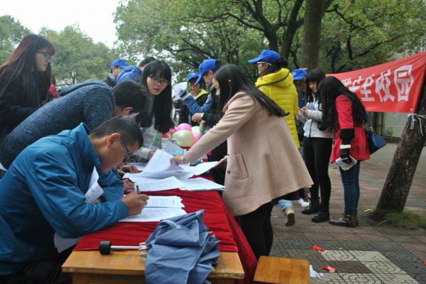 | ——记湖南科技大学关于大学生在校安全问题法 宣传系列活动 11 月30日 上午8:30,作为“12·4”法制宣传日活动的第一站,以“加强法制宣传教育,建设和谐安全校园”为主题的大学生在校安全问题法律宣传系列活动正式开展。此次活动由湖南科技大学法学院主办,法律协会和校保卫处承办,在北校八区新公寓路口和南校美食广场同时进行。宣传法律知识,提供法律咨询服务,增强学生的在校法治安全意识正是开展此次活动的主要目的。 活动开始前,法律协会和校卫队的成员做了精心的布置与准备,整洁的服务台,精美的小礼品,鲜红的签名横幅都预示着本次活动必定多姿多彩。活动期间,成员们向同学们发放法律知识宣传单、实施问卷调查、开展法律知识竞赛及有奖问答游戏。尽管在活动中天气阴沉,雨点不断,但丝毫没有影响同学们参与活动的热情。 在本次活动中,最大的亮点莫过于有奖问答游戏的开展。游戏的参与者填完调查问卷后,将抽取一个含有小纸条的气球,将所选气球吹爆,然后回答内附纸条上与法律相关的问题,例如“我国法律规定,18岁达到完全追究刑事责任的年龄起点”这一类法律常识。回答正确的参与者会得到小礼品一份。活动以这样一种轻松愉悦的方式,激发大家的参与度,同时普及校园安全知识的了解,使法律知识进一步进驻在他们心中。 活动最后,就此次活动的感受,法律协会会长张文说到:“这次活动旨在宣传校园法治安全知识,在活动的进行中,我们发现同学们还是有这方面的需求的,在丰富社会实践的同时服务育人,是一次非常有价值的经历。” (责任编辑:admin) |