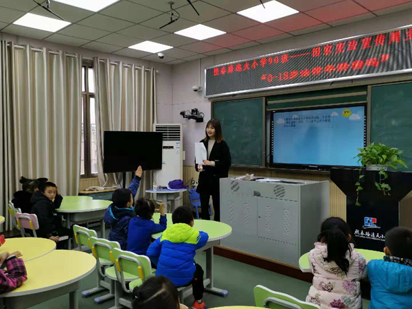 在和平小学的普法课堂中,主讲人张子婧用原创的普法漫画向同学们讲解了每一次过生日在法律上都有着特殊的意义和要求。此次活动中的普法漫画是湖南科技大学普法工作小组的创新成果,通过诙谐幽默的动画人物和生动有趣故事向同学们展示一个个关于年龄的“法律密码”。